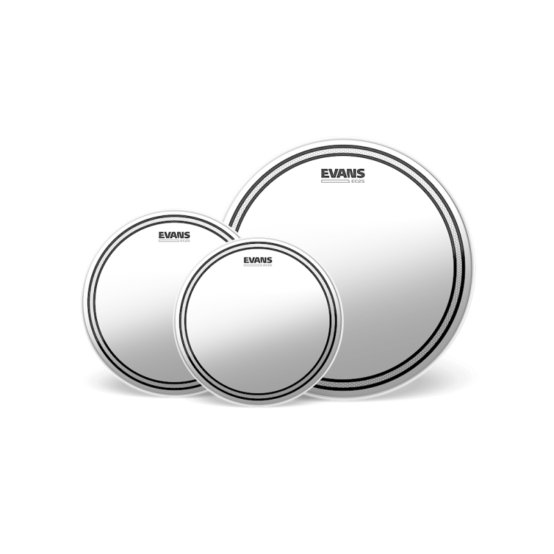 La gamme de peaux transparentes EC2 par Evans est fabriquée en film double-pli (7 millièmes par pli) avec une conception optimisée pour l'attaque, le son, la durée du sustain, et la facilité d'accordage de chacune des tailles de peau. L'anneau SST (Sound Shaping Technology, technologie de modelage du son) monté du côté inférieur de la peau offre un son extrêmement équilibré et pré-égalisé sur l'ensemble du kit grâce à son réglage variable pour chaque peau.