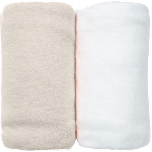 Eveil et Nature Lot de 2 Draps Housse jersey 40x80 cm Coton bio Blanc/Ecru