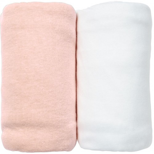 Eveil et Nature Lot de 2 Draps Housse jersey Coton bio Blanc/ Pêche