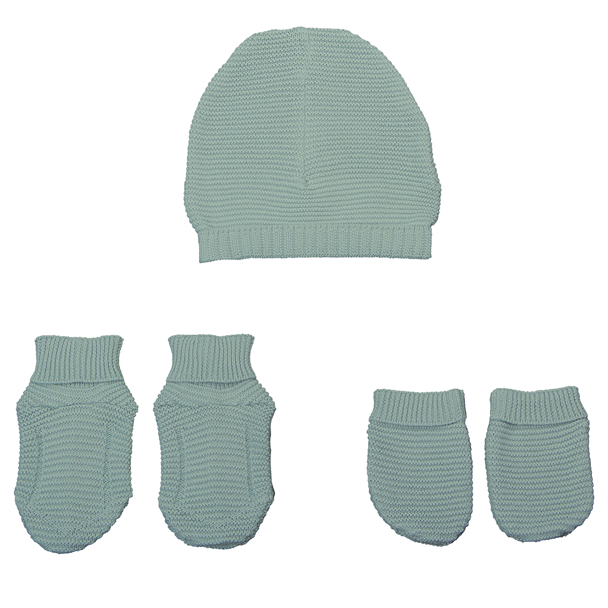 Eveil et Nature Set bonnet-chausson-moufle 0-3 mois tricot coton bio Aqua