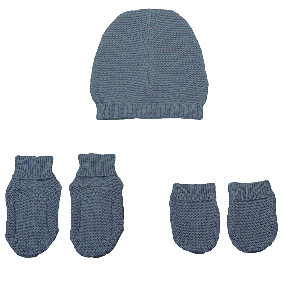 Eveil et Nature Set bonnet-chausson-moufle 0-3 mois tricot coton bio Bleu