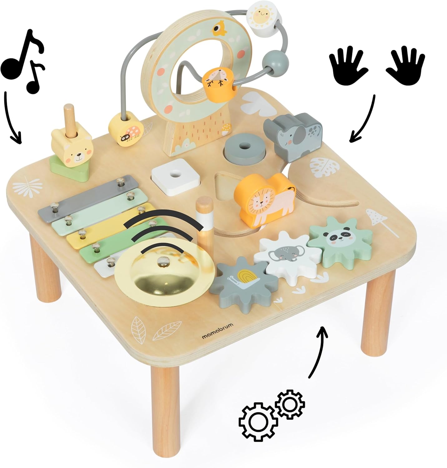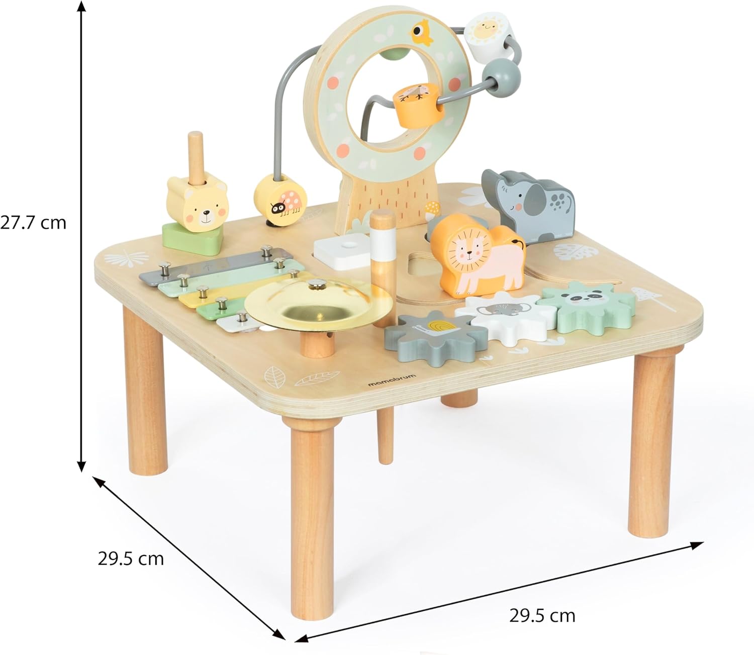 Table éducative carrée en bois 7 en 1 avec cymbales et gong - Jungle sauvage