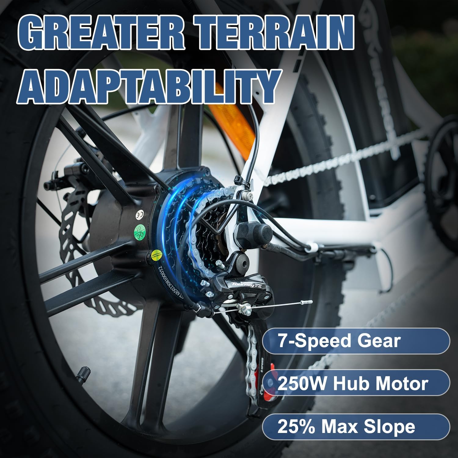 EVERCROSS EK6 Vélo Électrique pour Adultes – VTT Pliable 20" x 4.0, Moteur 250W, Batterie 48V 15Ah, 7 Vitesses, Amortisseurs Doubles, Freins à Disque