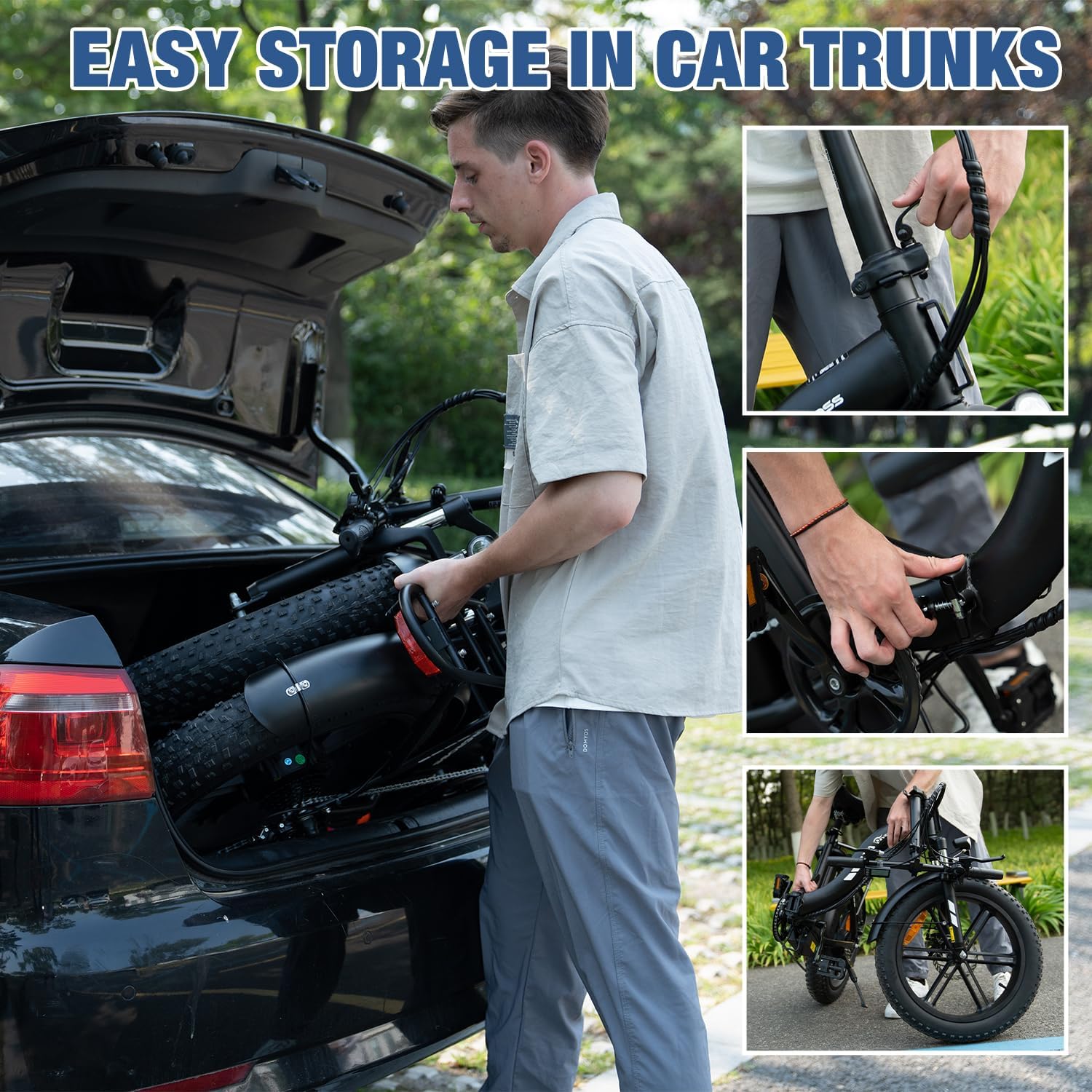 EVERCROSS EK6 Vélos Electriques Adultes, VTT Electrique Pliable avec 20" x 4.0 Gros Pneu - 48V 15Ah - Noi