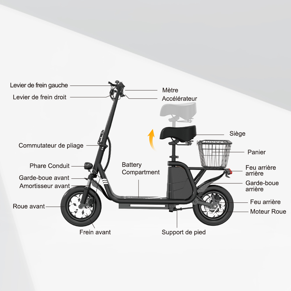 ✅︎Trottinettes électriques avec siège et panier de rangement