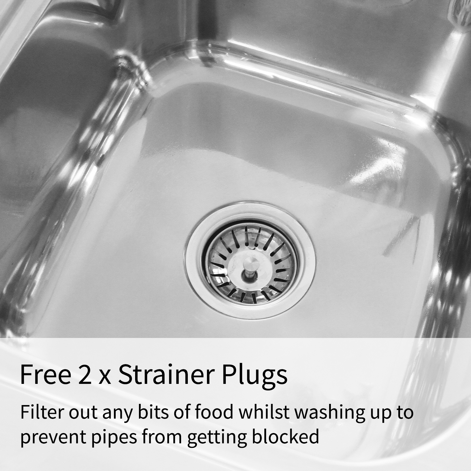 Cet évier de restauration KuKoo est également livrée avec 2 bouchons filtre gratuits, idéals pour filtrer les débris d’aliments et empêchant ainsi vos tuyaux de se boucher.