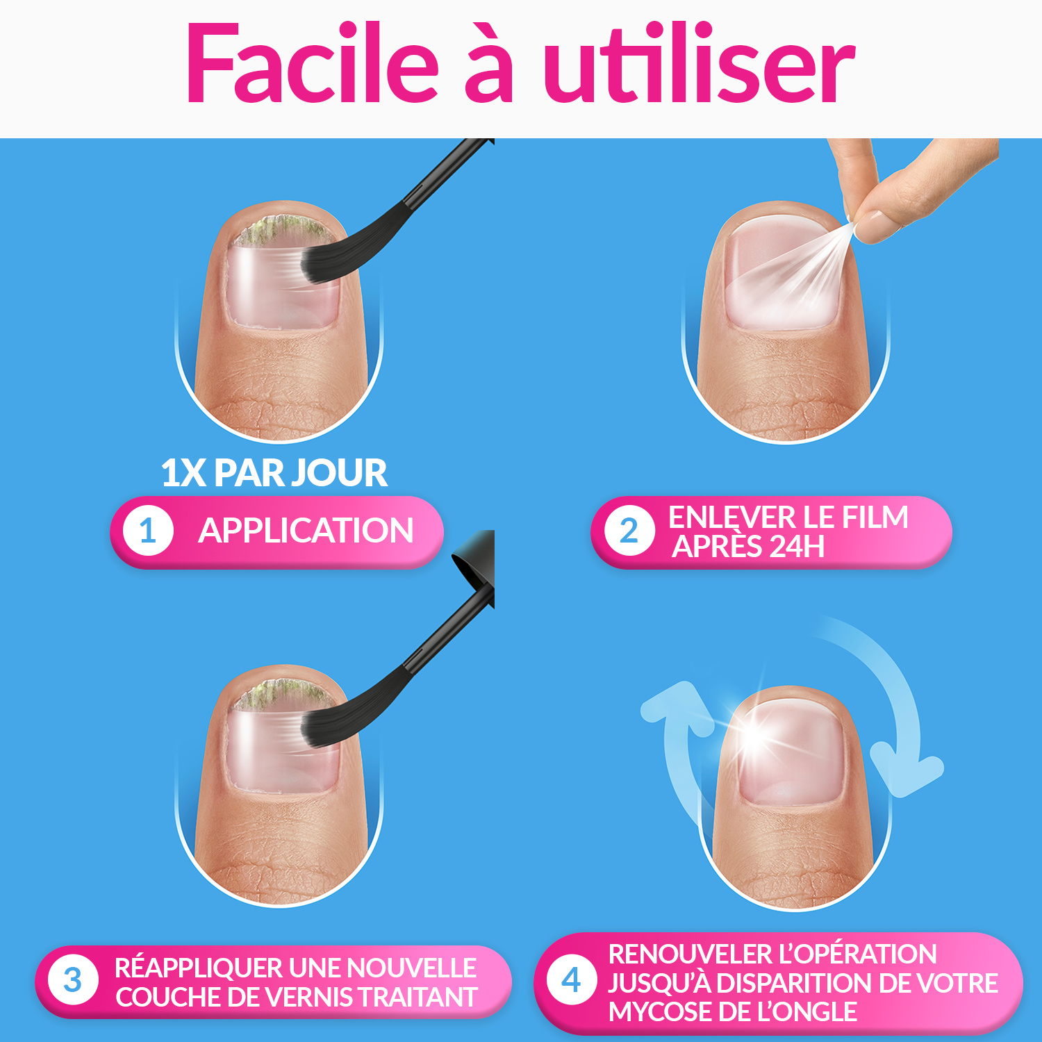 Excilor Traitement de la Mycose de l'Ongle Forte contrôle le micro-environnement de l’ongle en acidifiant le lit de l’ongle. Contient des substances acides capables de pénétrer l’ongle de sorte que l’ongle est traité “de l’intérieur vers l’extérieur”. Abaisse immédiatement le PH de l’ongle et rend ainsi l’environnement hostile à la prolifération des mycoses.