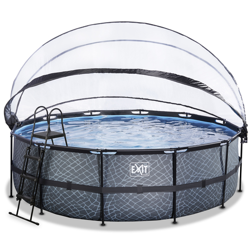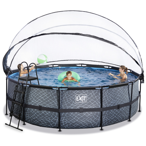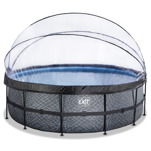 EXIT Piscine couverte Stone ø450x122cm avec pompe de filtration à sable et à chaleur - grise