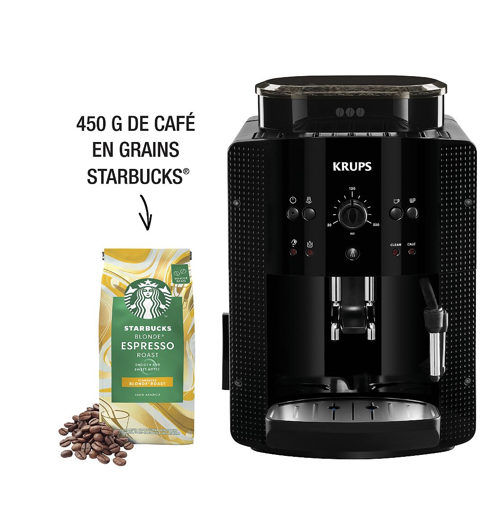 Expresso Broyeur Krups Essential noire YY4540FD + 1 paquet de café Starbucks