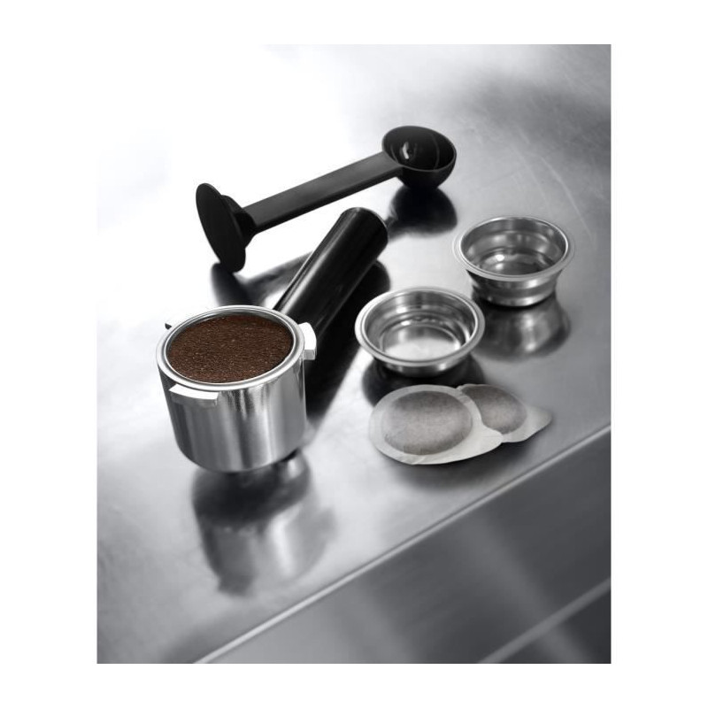EXPRESSO SOLO POMPE - Expresso ultra compact (14,9cm de large) - arrêt automatique 1 ou 2 tasses - porte filtre ESE - thermoblock contrôle electronique - buse vapeur double position - plateau tasse 2 position (mug) finition METAL INOX