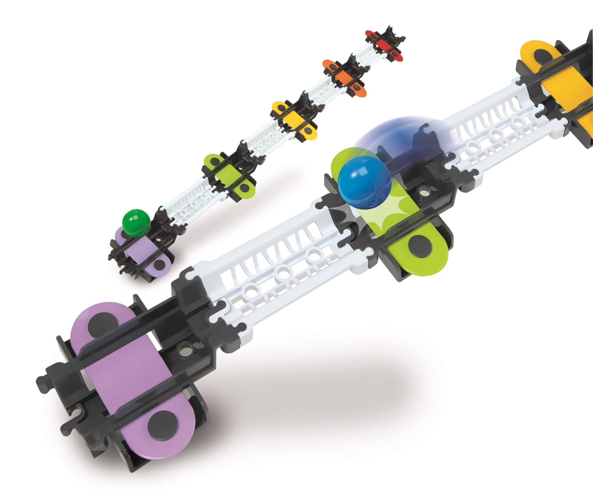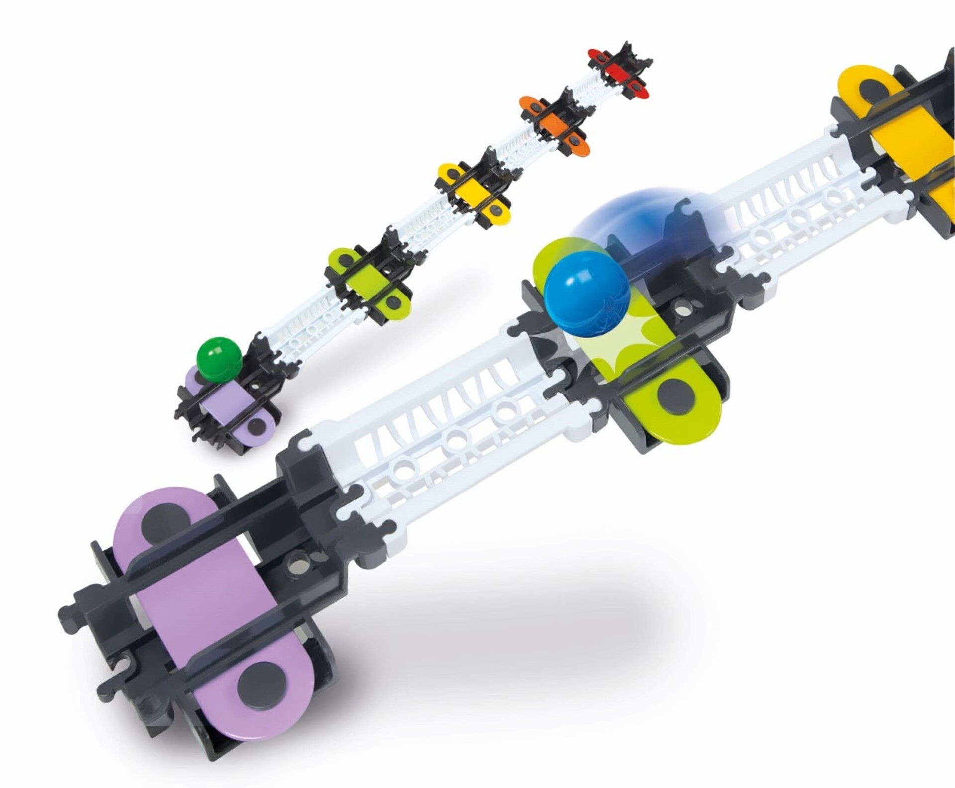 La physique n'a jamais été aussi étonnante ! Un coffret additionnel unique, avec 5 bandes musicales pour créer des circuits avec un effet original. Chaque bande musicale joue une note différente lorsqu'elle est frappée par la balle, comme un vrai xylophone ! Construis tes circuits et défie les lois de la physique... ton imagination sera sans limite, de même que l'action et la réaction !