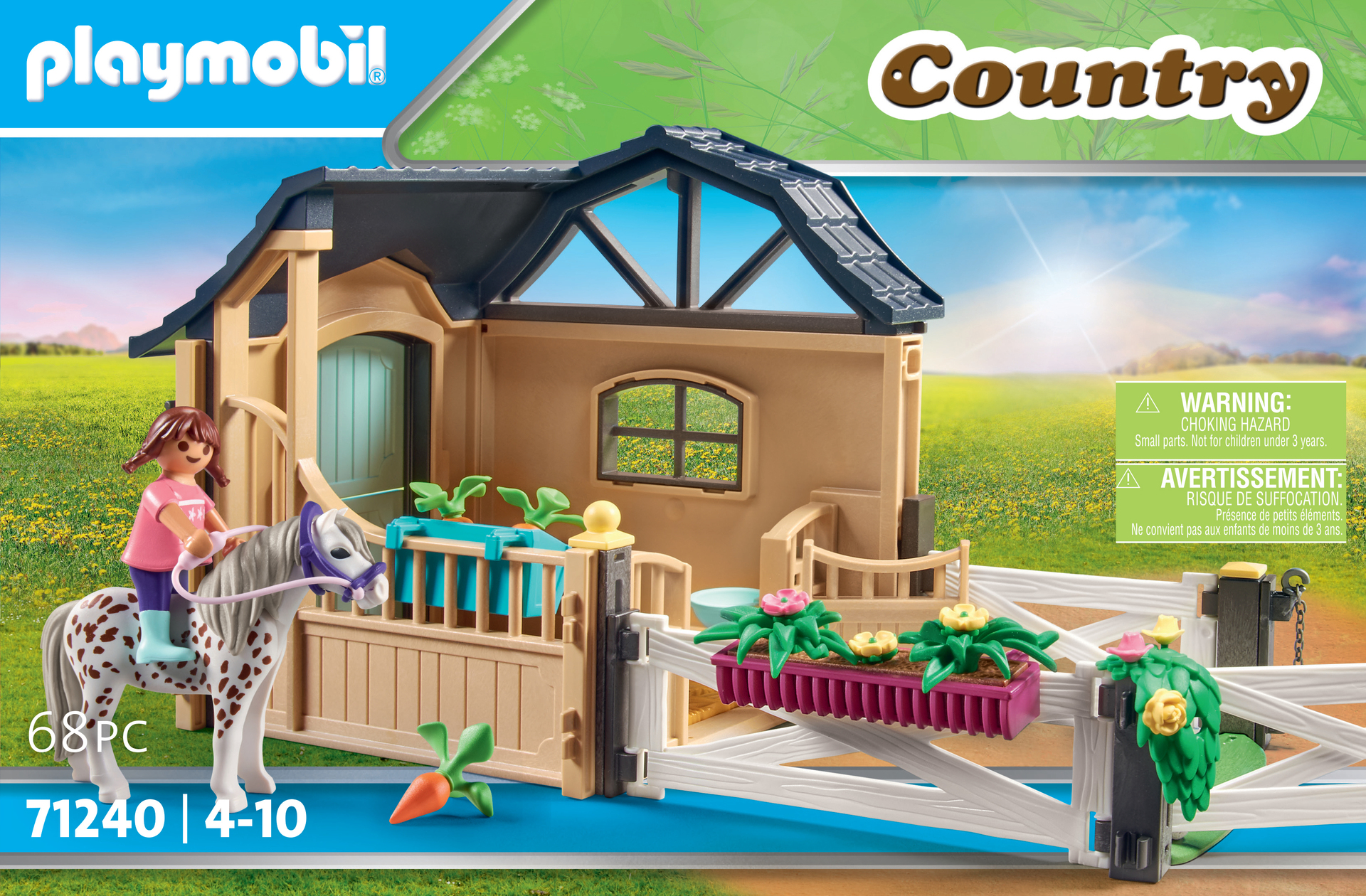 Gain de place garanti grâce à l'extension et son box à cheval Playmobil. Un espace idéal pour accueillir un poney et sa cavalière. Fourni avec tous les accessoires nécessaires, ce petit poney risque bien d'être très gâté.