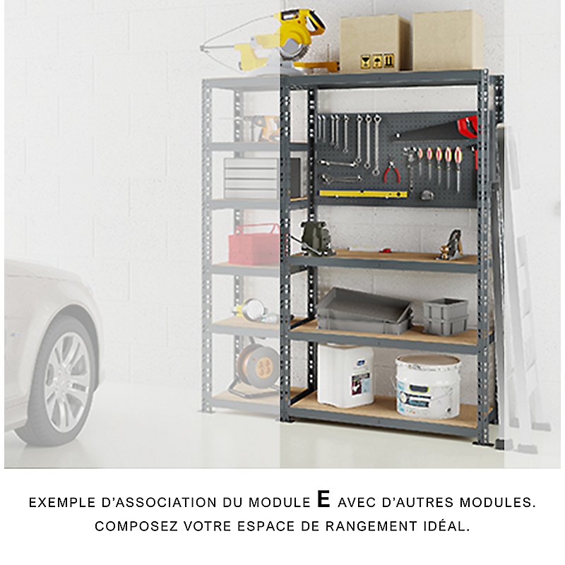 | Libellé | Extension établi étagère charge lourde MODULÖ STORAGE 3 plateaux bas + 1 plateau haut dimensions 40x100xH 192 cm livrée avec panneau porte-outils dim |