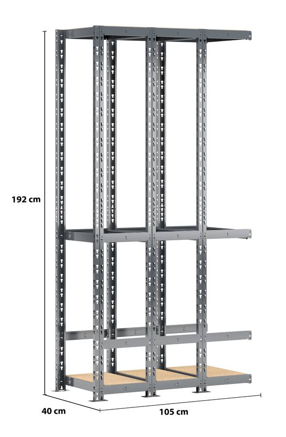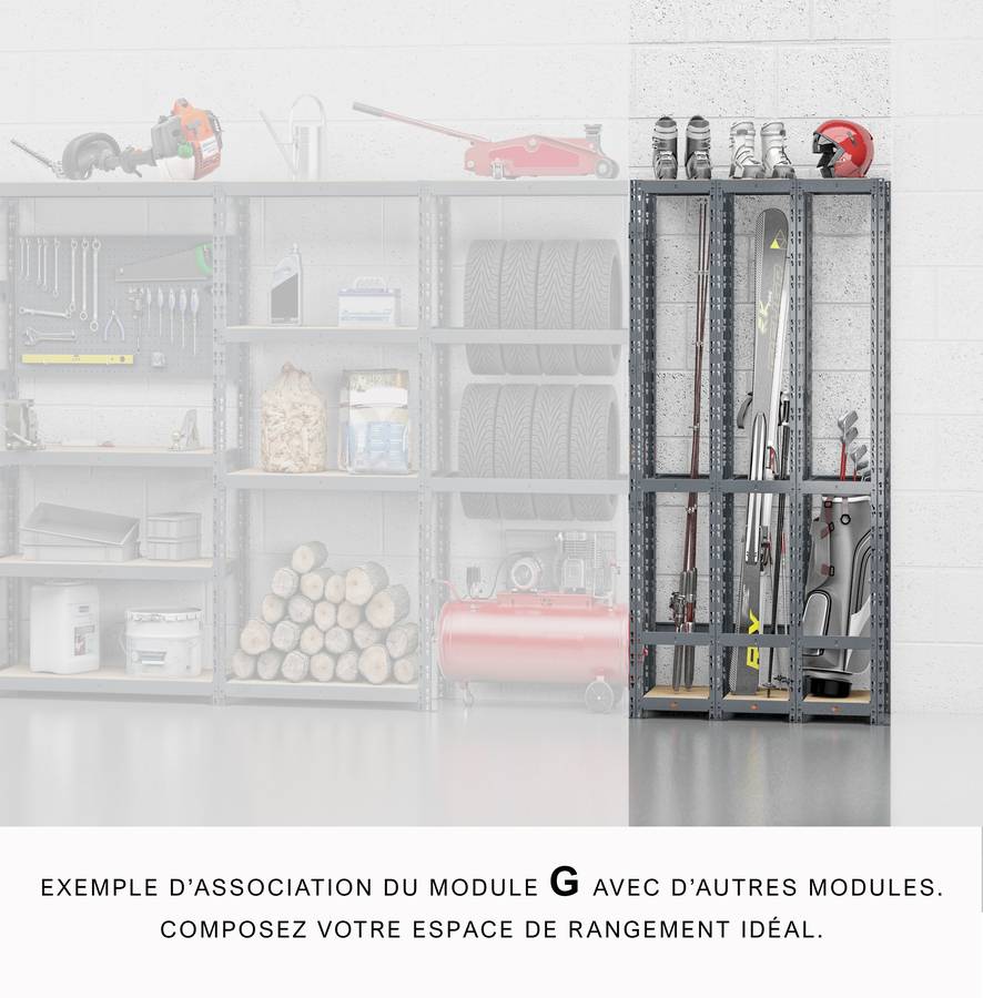 Extension étagère de rangement verticale 3 box MODULÖ STORAGE dimensions 40x105xH 192 cm livrée avec plateaux bas et plateaux hauts montage rapide par clipsage finition peinture époxy