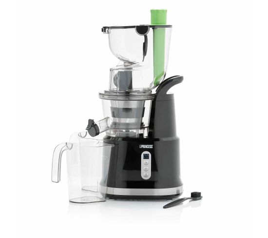L’extracteur à jus Princess 202045 Easy Fill permet d’extraire le meilleur jus des fruits et légumes. Le grand tube d’alimentation ne vous oblige pas à couper la plupart de vos ingrédients. Les grands produits comme les pommes et les tomates passent en une fois dans le tube. La technique d’extraction lente et parfaitement adaptée presse le jus de tous les fruits et légumes pour une plus grande quantité de jus. L’extracteur à jus correspond parfaitement à votre style de vie sain et est très facile à nettoyer. Extracteur à jus vertical L’extracteur à jus Princess Easy Fill a une broche conique verticale et un tamis fin afin que les fruits et légumes, durs ou mous, soient pressés facilement et vous n'aurez qu’à hacher grossièrement les ingrédients avant de les ajouter. Le tamis fin sépare tous les jus de la pulpe, ainsi vous profiterez de tous les nutriments, vitamines et saveurs de fruits et légumes. Grâce à la grande ouverture de remplissage facile, vous pouvez ajouter des produits entiers, vous ne perdrez pas de temps à les hacher. Vous pourrez ainsi profiter plus facilement d'un jus frais. Point de mire sur votre plan de travail Le moteur silencieux de l’extracteur à jus Princess Easy Fill Slow Juicer veille à ce que vous ne dérangiez ni votre famille ni vos voisins lorsque vous lancez l'extraction du jus. Vous pourrez faire du jus tôt le matin jusqu'à tard dans la nuit. Le design luxueux en fait un vrai point de mire sur votre plan de travail. Vous n'aurez plus à vous soucier de résidus collants sur votre plan de travail grâce au stop-goutte intégré. Réservoir à pulpe pratique Le grand réservoir à jus a une contenance de 900 ml pour vous permettre de recueillir suffisamment de jus pour 4 verres. La pulpe restante est recueillie dans le récipient à pulpe de 900 ml et peut facilement être jetée, mais vous pouvez également l'utiliser pour toutes sortes de délicieuses recettes. Ajoutez la pulpe de fruits à de la pâte à muffins ou à des barres granola faites maison. La pulpe des légumes peut être mélangée à la sauce pour pâtes ou intégrée à un burger végétarien. Facile à nettoyer Toutes les pièces sont facilement démontables de la base de la centrifugeuse et peuvent aller au lave-vaisselle. Cela rend le nettoyage de l’extracteur à jus Princess Easy Fill Slow Juicer très pratique. Commencez votre journée d’une façon saine avec de délicieux fruits et jus de légumes. Combinez par exemple la pomme, le concombre, la menthe pour un jus vert rafraichissant. Ajoutez du gingembre ou une pincée de poivre pour booster le tout. Vous pouvez même extraire le jus d'herbe de blé pour votre shot du matin. Contenu de l'emballage : Extracteur à jus Princess Easy Fill, 2 récipients de 900 ml, brosse de nettoyage, mode d’emploi