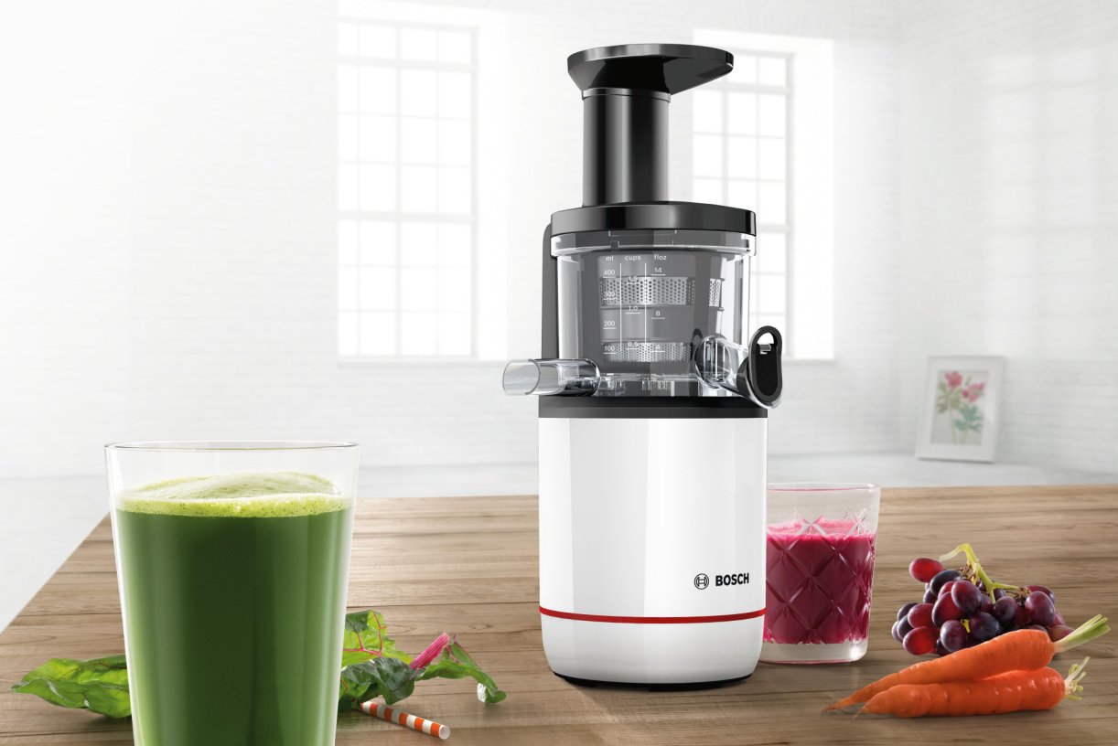 L'extracteur de jus VitaExtract de Bosch réalise des jus limpides et des smoothies onctueux, sains et délicieux grâce à ses 2 filtres. Vous trouvez l'inspiration dans le livre de recettes et l'application mobile. Sa puissance de 150 W et son système d'extraction doux et silencieux permettent d'extraire facilement une grande quantité de jus. Enfin il est simple à utiliser, à nettoyer et sublimera votre cuisine. Extracteur de jus VitaExtract - Puissance : 150 W - Technologie d'extraction lente : 55 tours/min - Extraction universelle : fruits, légumes, noix, amandes, fruits congelés - 1 vitesse + rotation sens inverse - Visse sans fin haute résistance en Tritan - Accessoires : Carafe à jus 1000 ml, Réservoir à pulpe 1300 ml, 2 filtres : tamis trous fins (jus), tamis gros trous (smoothies), Brosse de nettoyage, Livre de 30 recettes - Coloris blanc