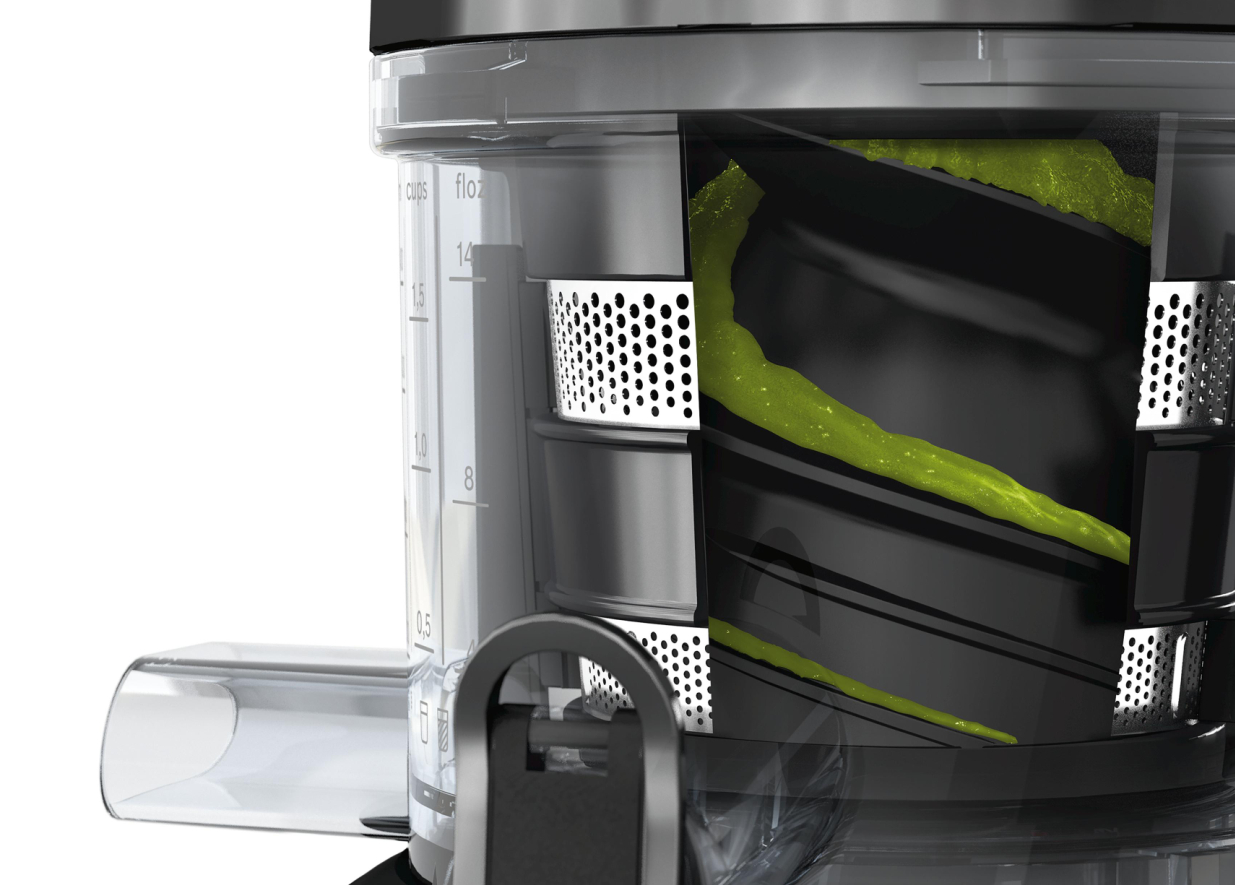 [Cet avis a été recueilli en réponse à une offre.] C'est mon deuxième extracteur, le premier était horizontal et d'une autre marque. Je trouve celui-ci génial : peu de bruit, pratique, il attrape bien les morceaux pas la peine de les pousser, la pulpe est bien sèche donc il est efficace, prend peu de place, facile à monter et démonter quand on suit bien les recommandation, et facile à nettoyer car il n'y a pas de recoin inaccessible ! le site est clair, propose des facilités de paiement et la livraison rapide ! rien à dire !