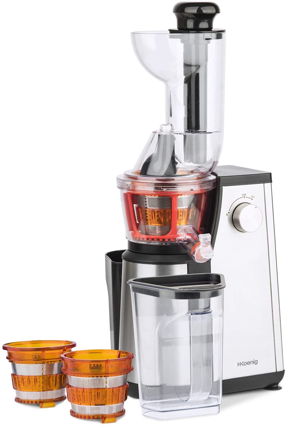 L’extracteur de jus extra lent vitamine+ GSX24 H. Koenig vous permet grâce à sa technologie innovante, pression douce à vitesse très lente et hélice sans lame, d’assurer une excellente qualité de jus. Un maximum d’apports nutritionnels, sans altérer les bénéfices des fruits et avec un minimum de déchets. Lancez-vous dans l’extraction de jus de fruits et de légumes frais, sains et remplis de saveurs tout en conservant l’ensemble des vitamines et le goût naturel de vos aliments. Le tamis spécial smoothie et sorbets vous permet de préparer de savoureux desserts glacés 100% fruits, sans sucres ajoutés. Plus besoin de couper vos fruits en morceaux, son bec d’introduction extra large et sa capacité d’un litre permettent d’extraire vos jus en grande quantité et en un rien de temps. Système silencieux et nettoyage facile grâce à ses pièces démontables. L’extracteur de jus extra lent vitamine+ GSX24 H. Koenig, votre nouveau partenaire santé !