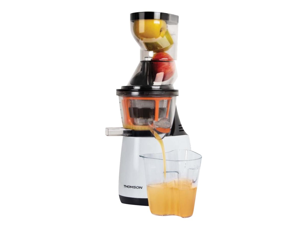 EXTRACTEUR DE JUS "THJU8165" Ouverture de 9,2 cm. Plus de perte de temps, pressage de fruits et légumes entiers. Vitesse de rotation : 65 tours/minute. Obtenez plus de jus avec plus de vitamines et de minéraux. La fonction reverse pour éviter les bourrages. Garantie constructeur 2 ans pièces et main-d'oeuvre.