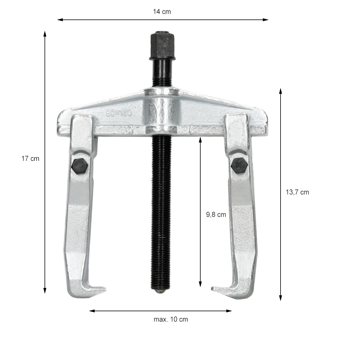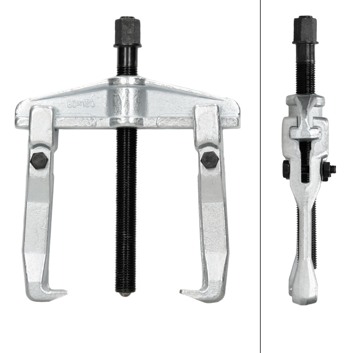 Extracteur parallèle à 2 bras en acier forgé robuste. Avec une profondeur de 9,8 cm et une largeur de corps de base de 10 cm. En inversant les mâchoires, le déclencheur interne et externe peut être utilisé.