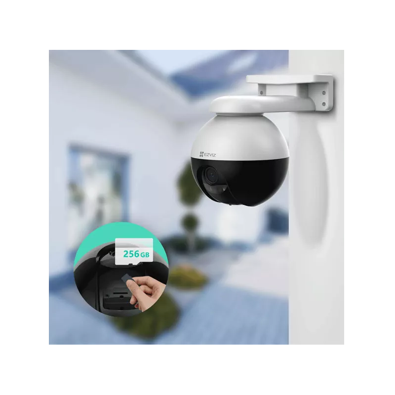 | Plus produit | Connexion Wifi - Contrôle à distance avec application mobile - Résolution 2K Couverture visuelle 360° - Images en couleur, même la nuit Communication audio bidirectionnelle - Reconnaissance IA des personnes et voitures Gestion à distance depuis l'application mobile - Compatible avec les équipements domotiques EZVIZ Stockage par carte micro SD (jusqu'à 256 Go) ou par cloud crypté |