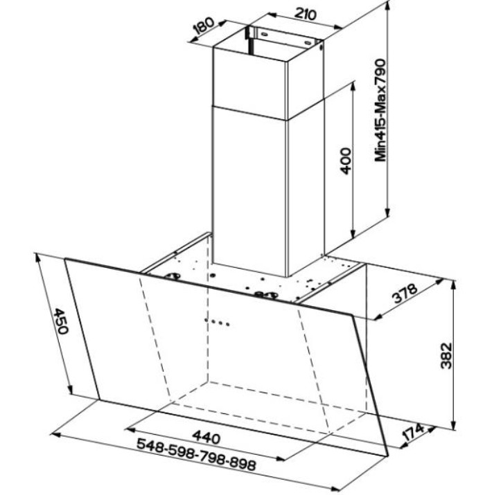 FABER S.p.A. Tweet EV8 LED BK A55. Puissance d'extraction maximum: 700 m³/h, Type d'extraction: Conduit / Recirculation, Classe d'efficacité dynamique du fluide: B. Type: Montée au mur, Couleur du produit: Noir, Type de commande: Tactile. Type de filtre à graisse: Aluminium. Puissance de l'ampoule: 2,2 W, Nombre d'ampoules: 2 ampoule(s), Type d'ampoule: LED. Consommation annuelle d'énergie: 74 kWh, Plage d’efficacité énergétique: A+++ à D, Charge connectée: 250 W