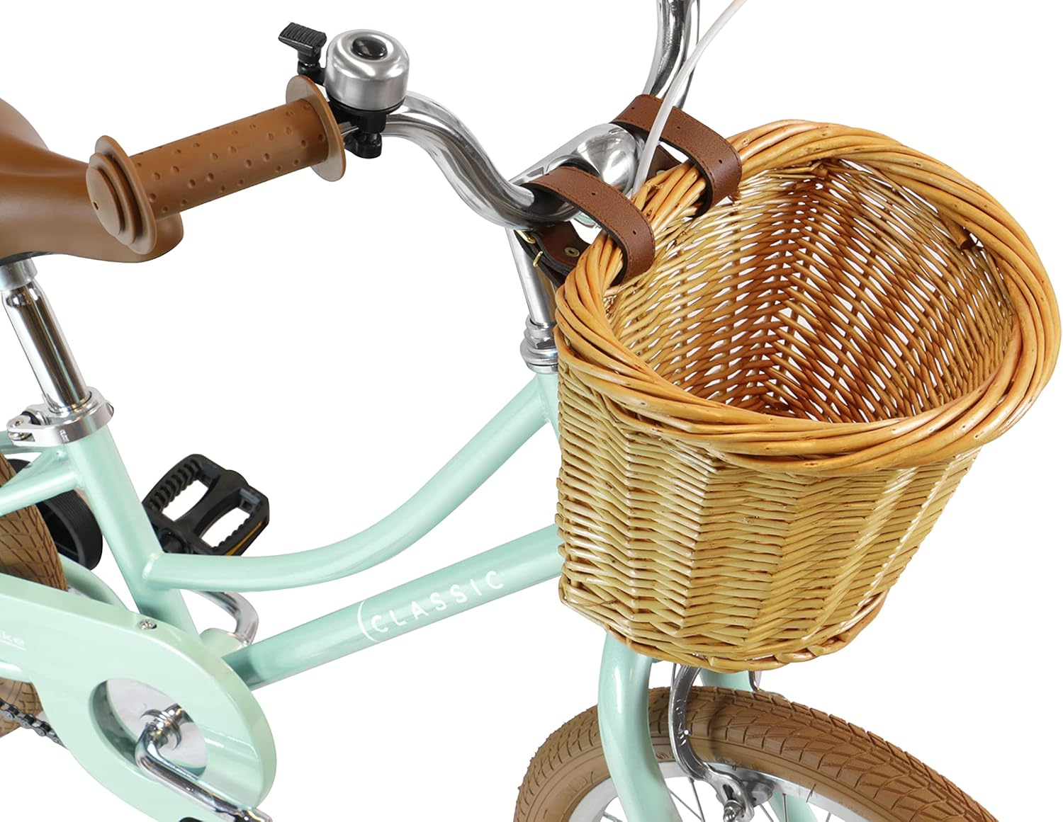 Vélo pour enfants FabricBike. Le cadre en acier robuste et les freins de haute qualité assurent la sécurité dès le départ. Roues d'entraînement amovibles. Comprend : selle en éco-cuir. Levier de frein avant confortable et frein arrière à rétropédalage. Roues d'entraînement amovibles. Cloche. Panier inclus.