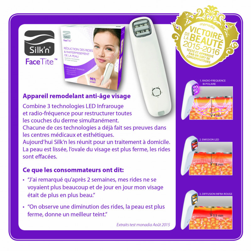 | Libellé | FaceTite triple technologie booster de collagène Silk'n FT1PE1001 |