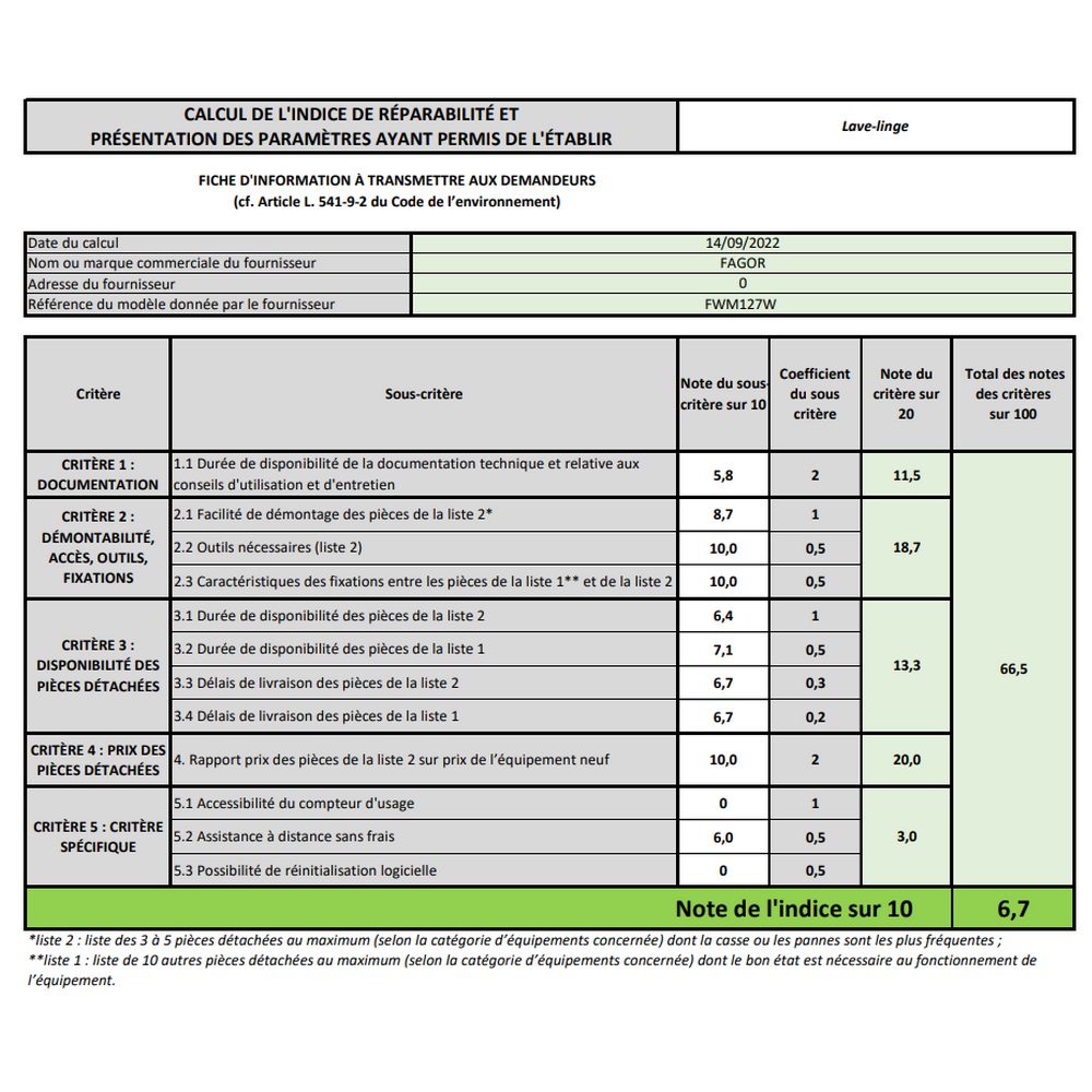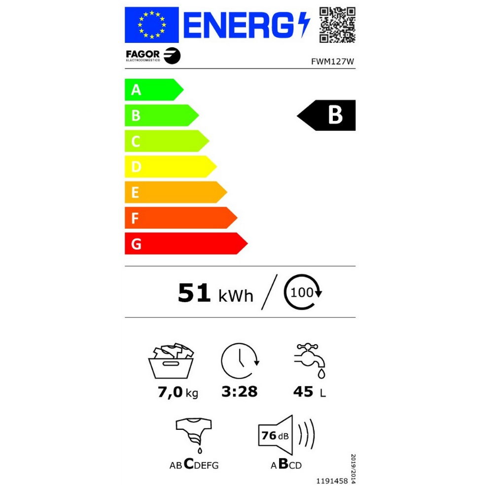Libellé FAGOR Lave-linge Frontal 7 kg 1200 trs/mn Faible profondeur 40 cm - Fwm127w