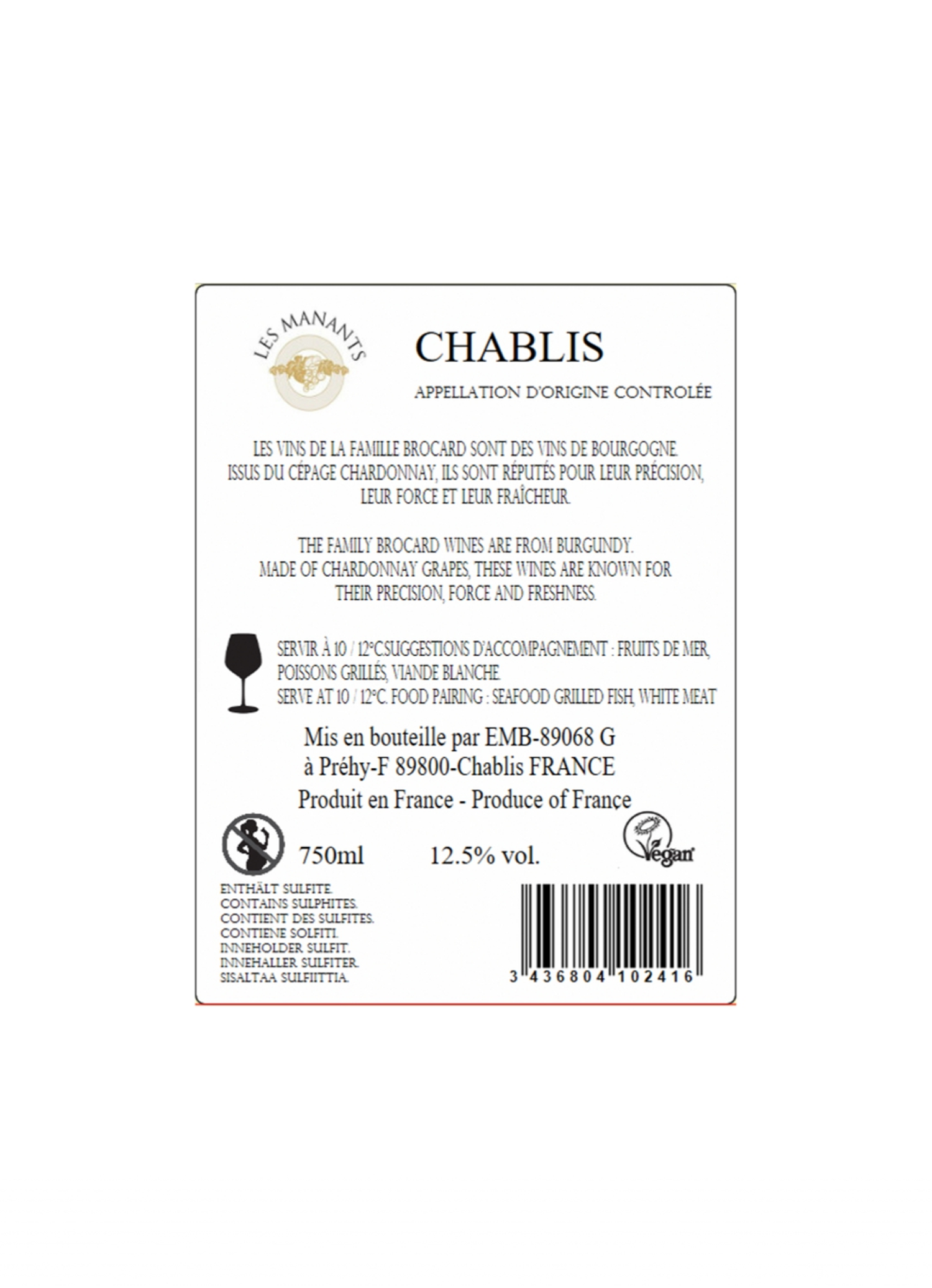 | Libellé | Famille brocard, 2024 - Petit Chablis AOP - Blanc Sec - 75 cl |
