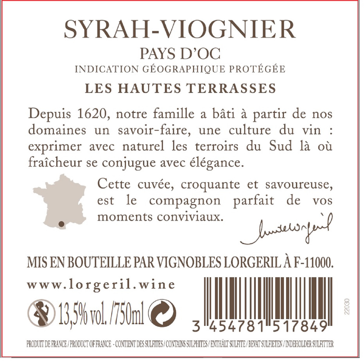 | Libellé | Famille de Lorgeril - Hautes Terrasses, 2022 - Pays d'Oc IGP - Rouge - 75 cl |