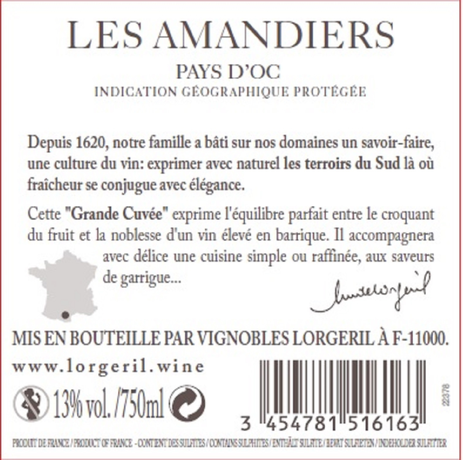 | Libellé | Famille de Lorgeril Les Amandiers Grande Cuvée, 2022 - Pays d'Oc IGP - Blanc Sec - 75 cl |