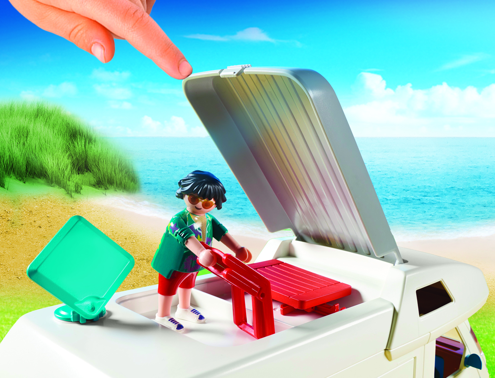 Contient 3 personnages (2 adultes et 1 enfant), 1 table et 4 chaises, 1 bloc d'alimentation électrique, 2 vélos et de nombreux accessoires (barbecue, couverts, aliments, anti-moustiques…)