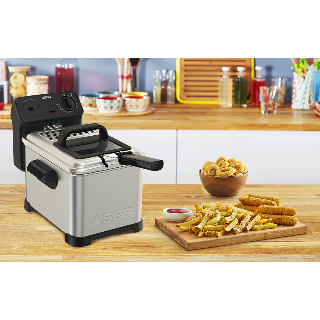 Family Pro est équipé d'un thermostat réglable, d'un minuteur digital ainsi qu'un filtre métallique permanent.