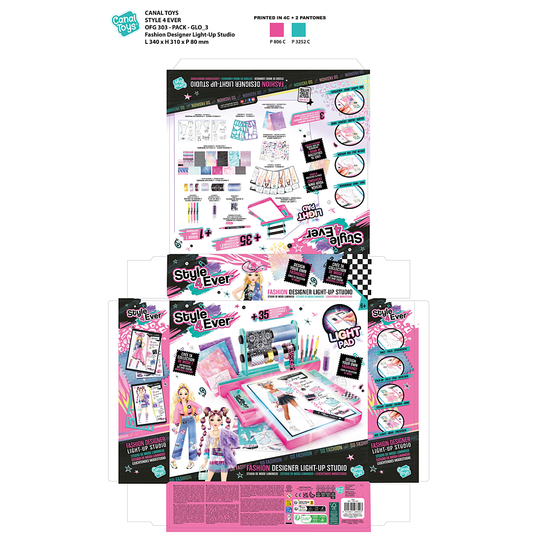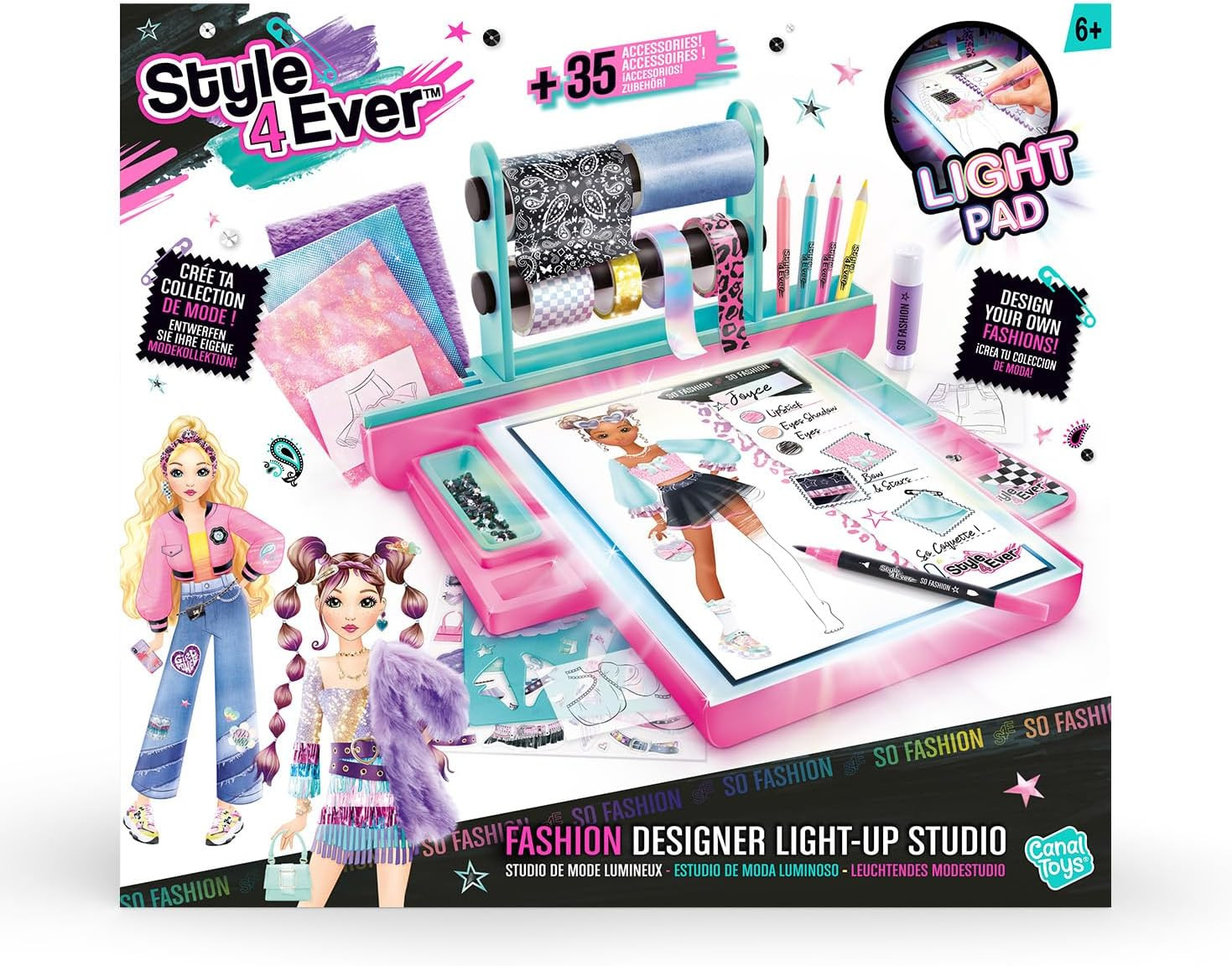 Révèle ton talent de styliste et crée ta collection avec ce Studio de mode lumineux ! Les accessoires inclus te permettont de réaliser facilement de nombreuses tenues. Il est équipé de tout le nécessaire du styliste : pochoirs, tissus, papiers imprimés…
