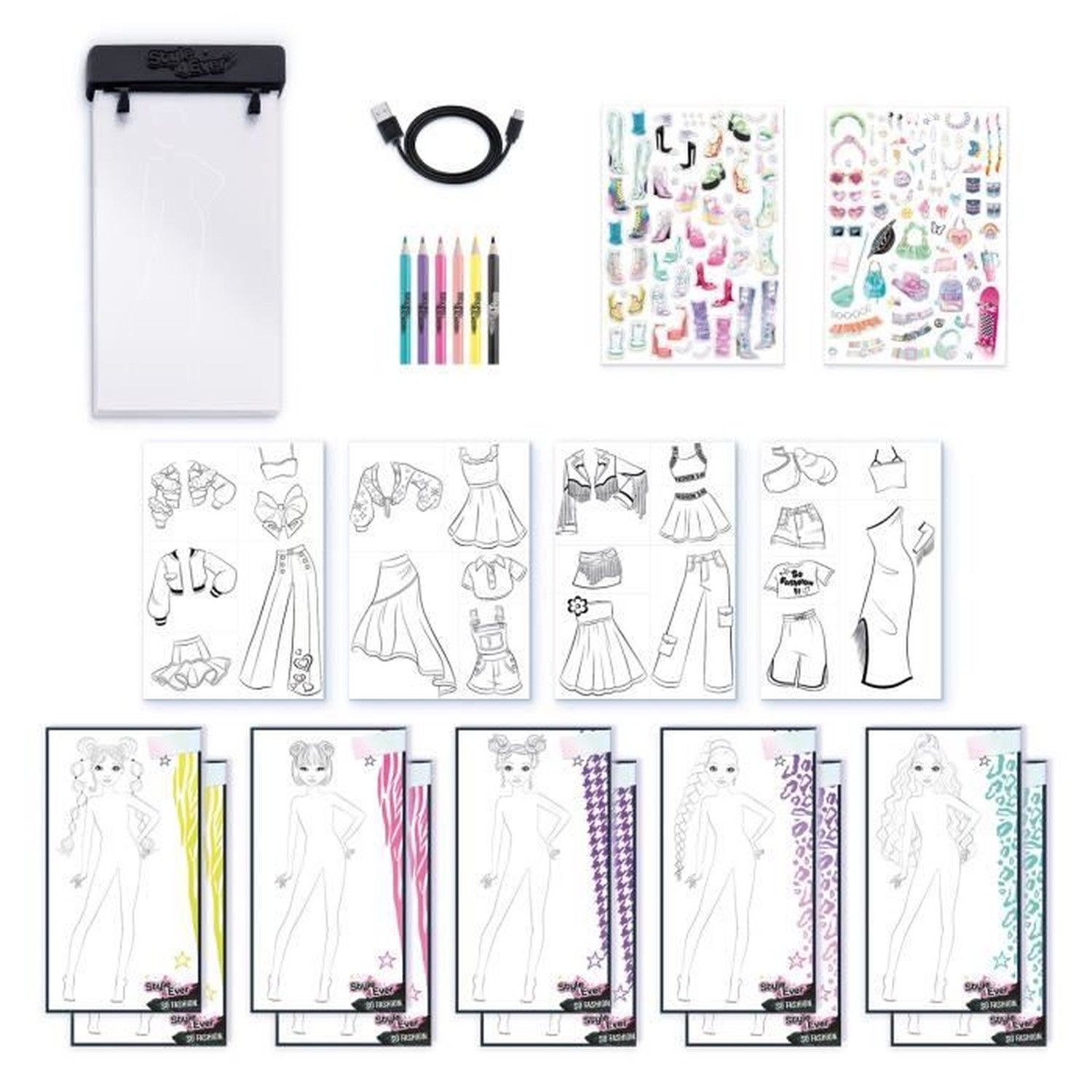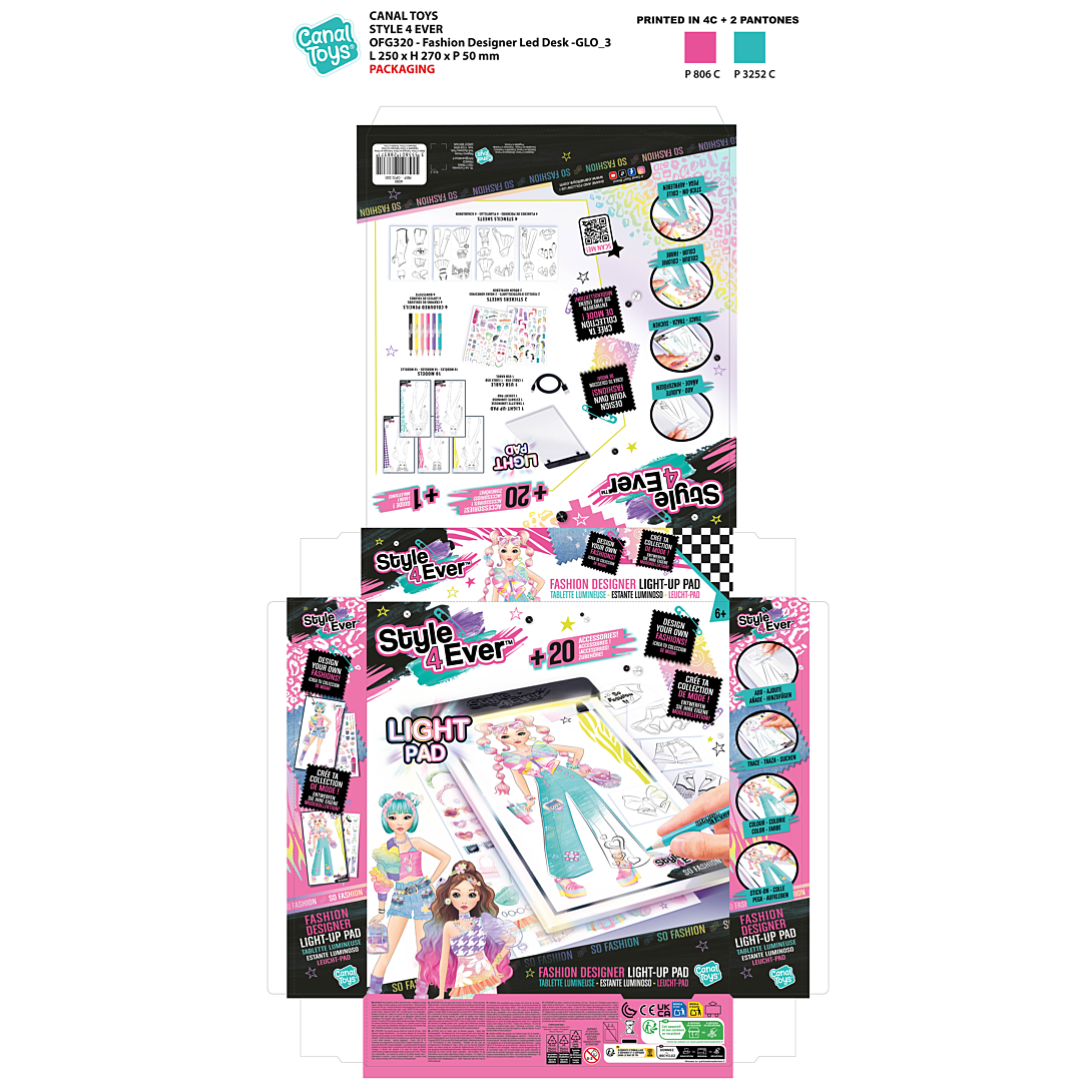 Révèle ton talent de styliste et crée ta collection avec cette Tablette lumineuse de mode ! Crée de nouvelles tenues avec des combinaisons de pochoirs audacieuses, et illumine tes nouveaux styles ! Les accessoires inclus te permettront de réaliser facilement de nombreuses tenues.