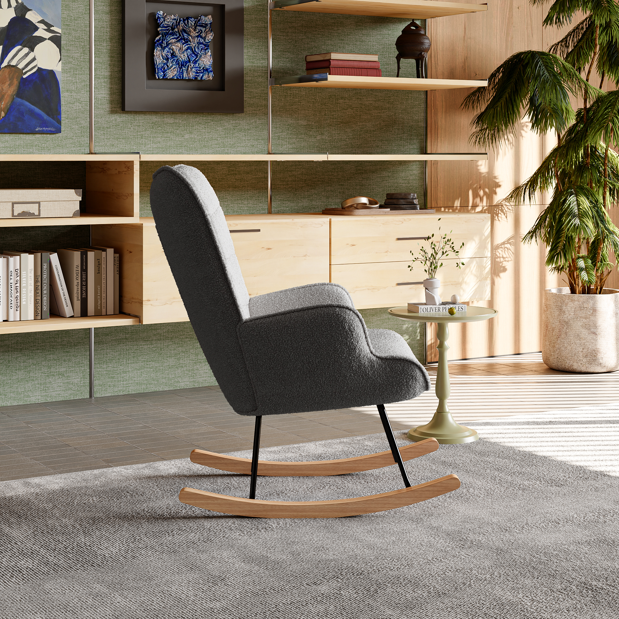 Fauteuil à Bascule, Relax, Avec Assise Rembourrée, 92 X 68 X 75 Cm, Peluche, Gris