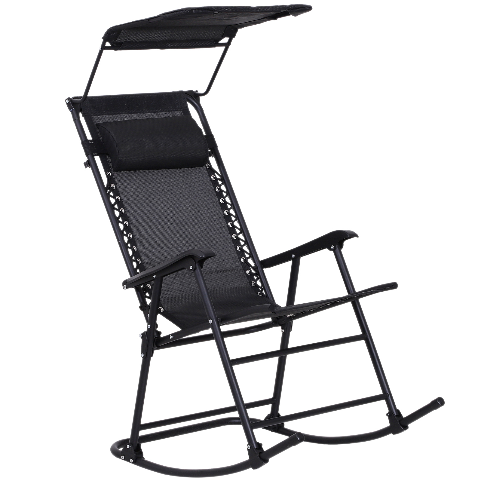 | Libellé | Fauteuil à bascule rocking chair pliable de jardin dim. 105L x 64l x 125H cm tétière + pare-soleil inclus acier époxy textilène noir |