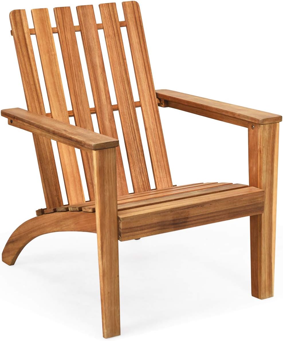 Fauteuil adirondack de jardin extérieur, chaise de jardin en bois d'acacia massif (naturel)