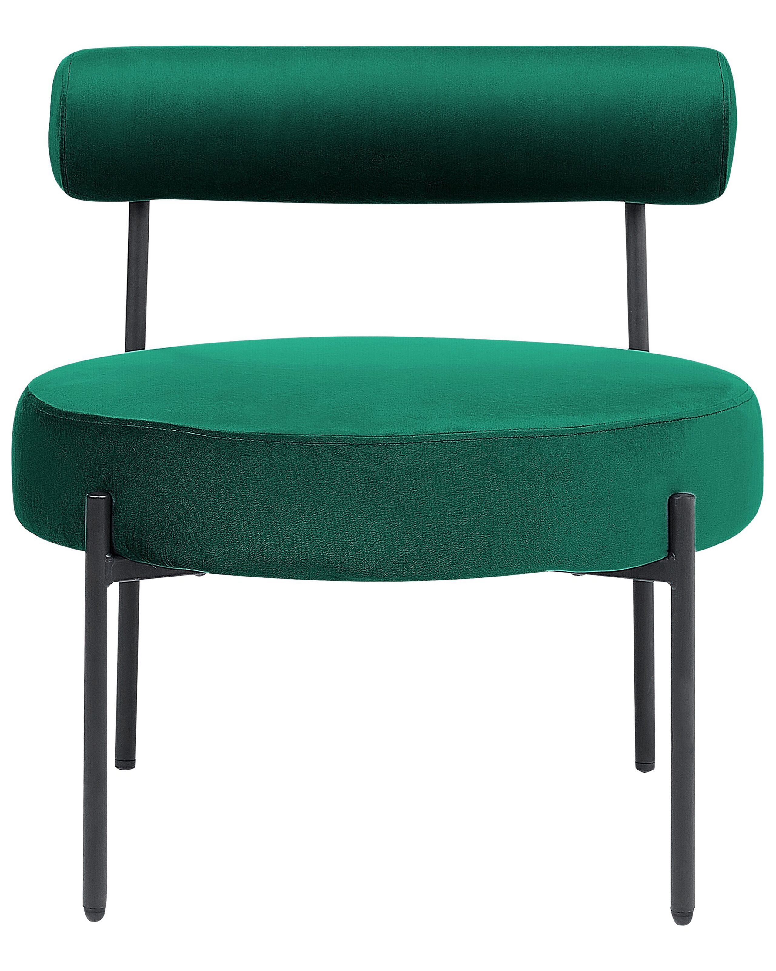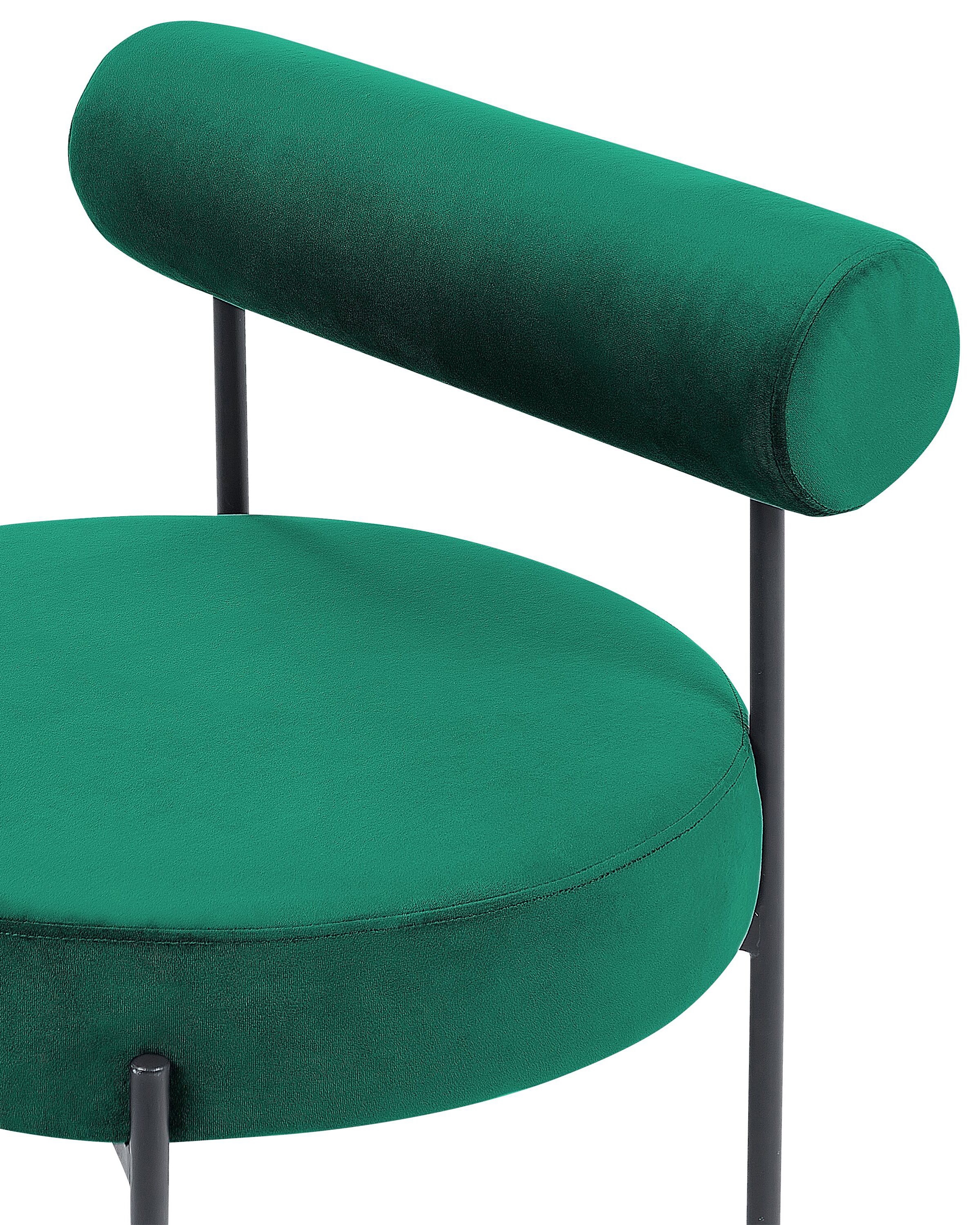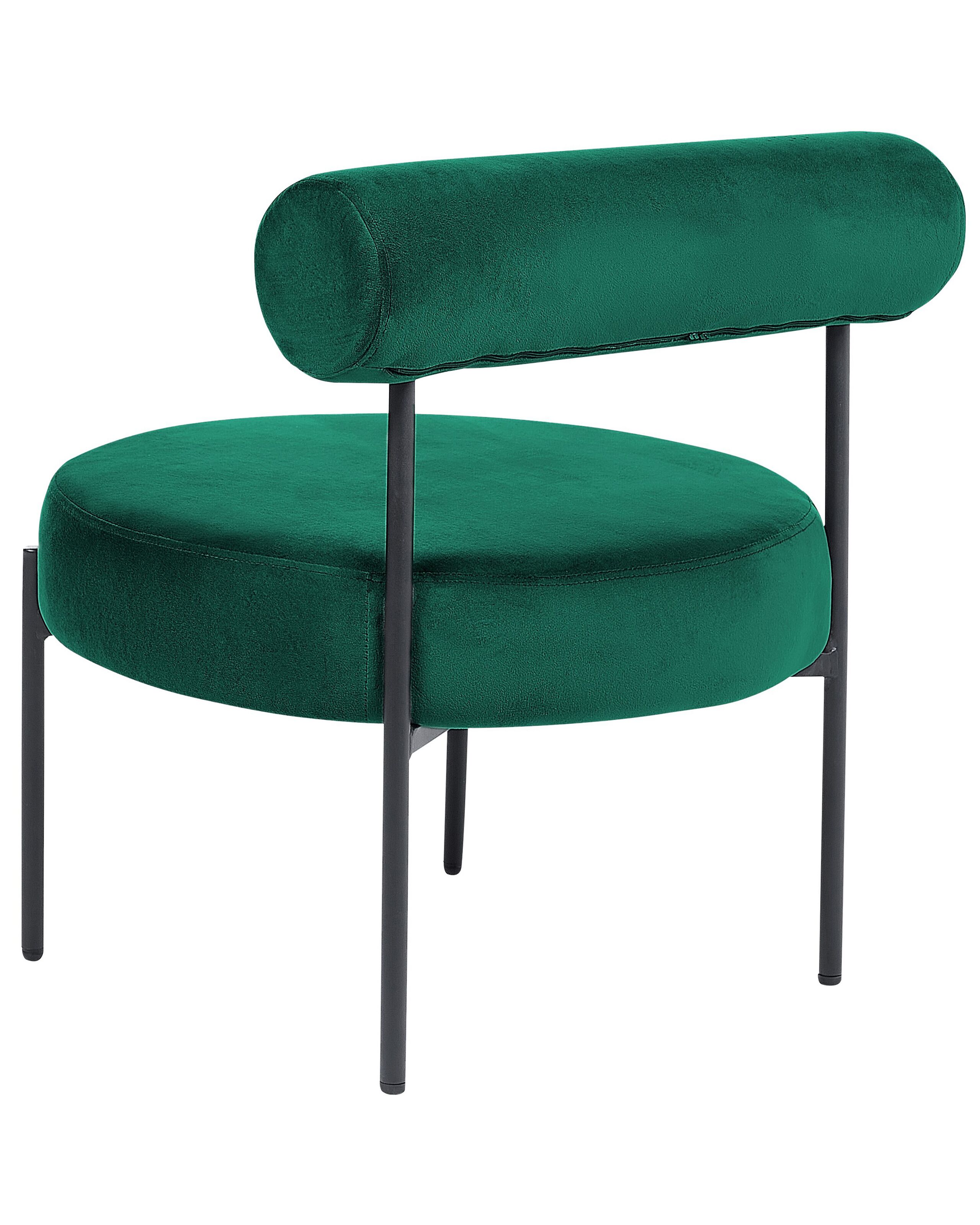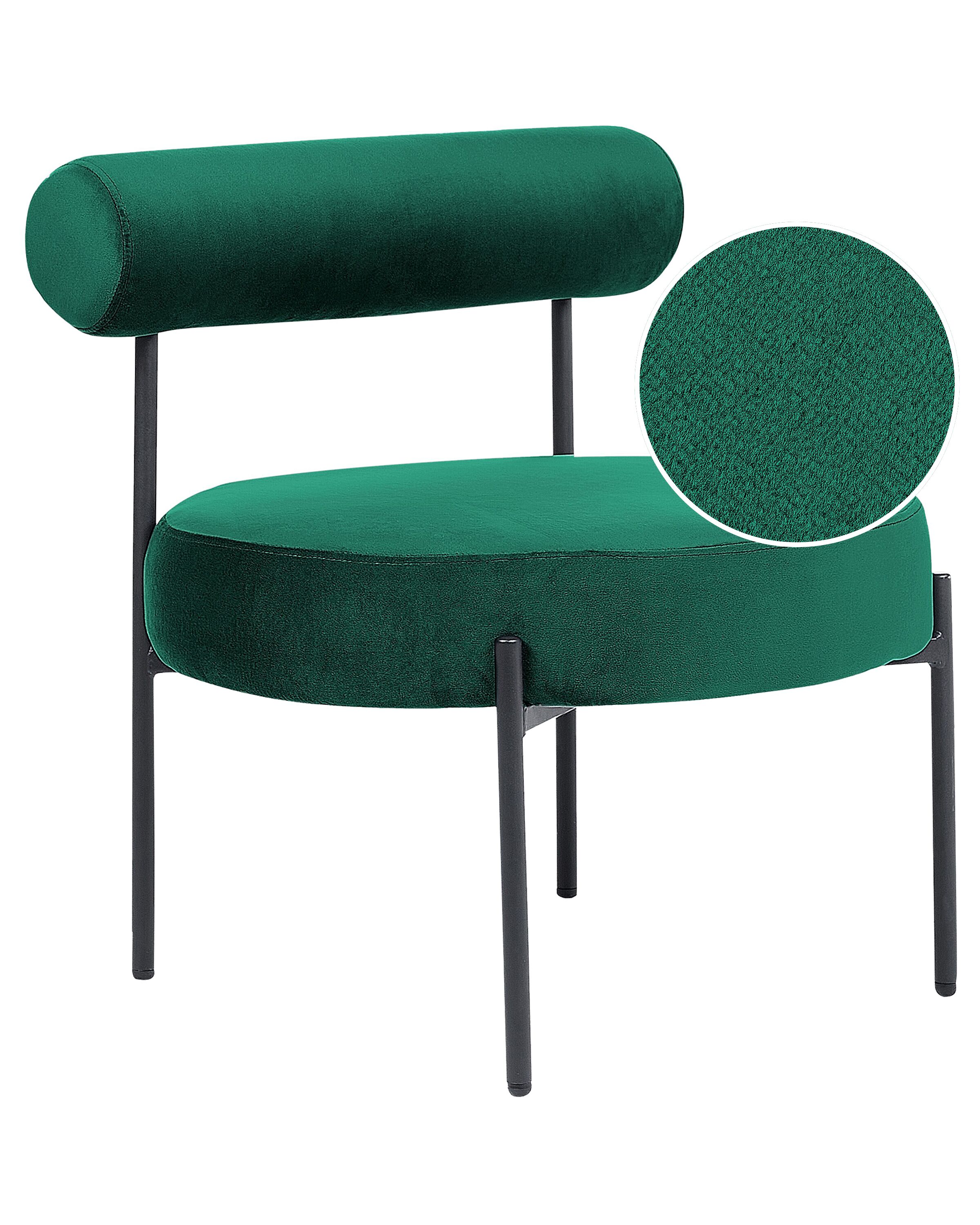 Fauteuil sans accoudoirs à dossier en tube. Avec cette chaise d'inspiration rétro, votre espace de vie ne manquera pas d'attirer l'attention et de charmer tous vos visiteurs. Cette pièce présente un design unique, ce qui constitue sa plus grande force - l'assise ronde et spacieuse, associée à un dossier en boudin, fait de cette chaise un endroit idéal pour se détendre et se relaxer après une longue journée. Posée sur d'élégants pieds noirs, la chaise est très stable, et sa couleur émeraude lui permet de s'intégrer dans de nombreuses pièces au style vintage. De plus, le produit est tapissé de velours agréable au toucher, qui ne nécessite pas beaucoup d'entretien pour durer de nombreuses années.