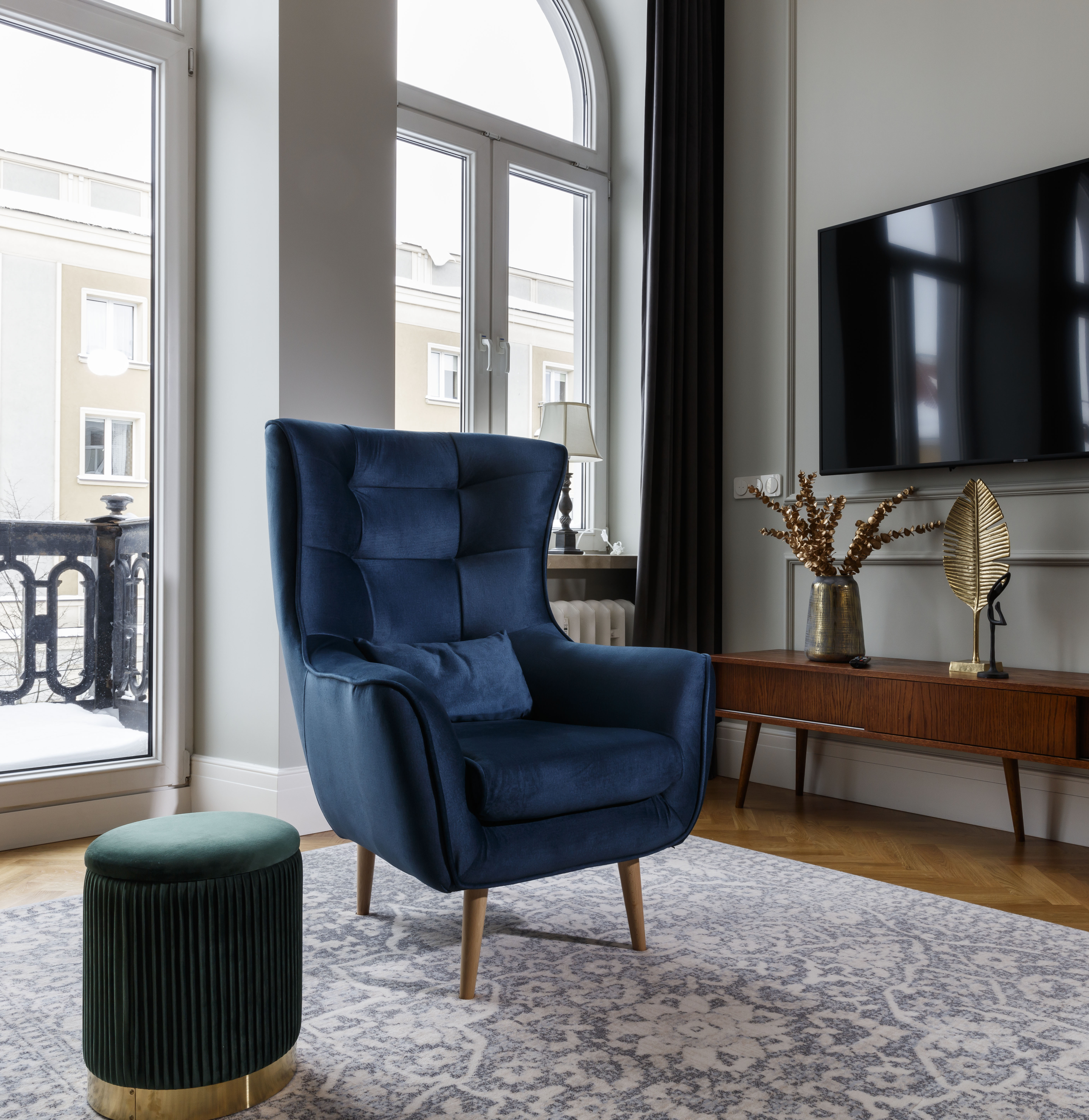 | Libellé | Fauteuil bergère velours bleu marine capitonné Lazza 80cm |