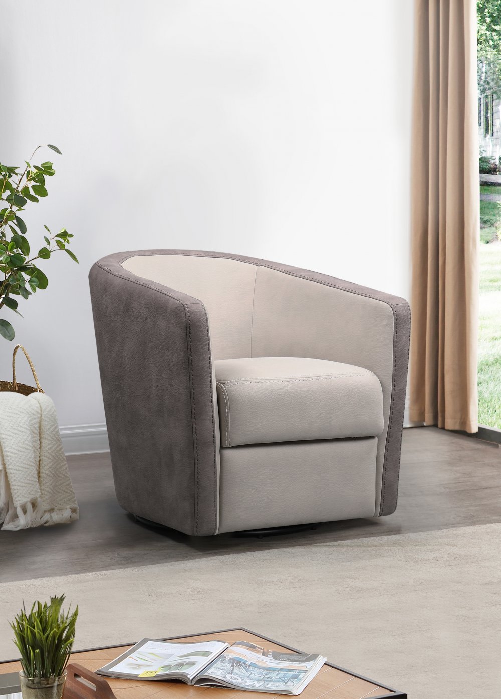Fauteuil cabriolet tournant TIMBER micro peau mastic & brun taupe