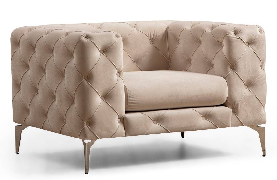 Fauteuil capitonné velours beige clair et pieds chromés Herakles 108cm