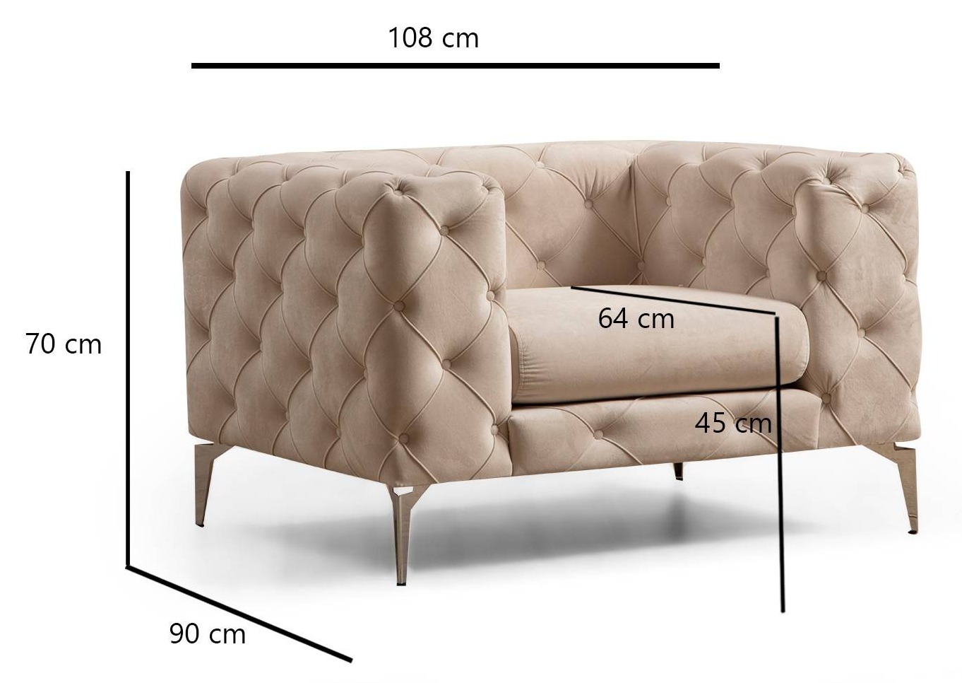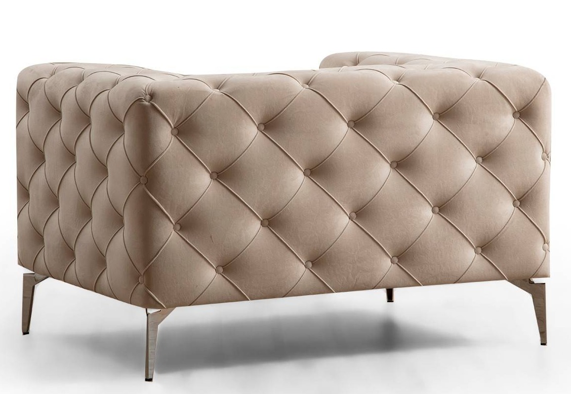 | Libellé | Fauteuil capitonné velours beige clair et pieds chromés Herakles 108cm |