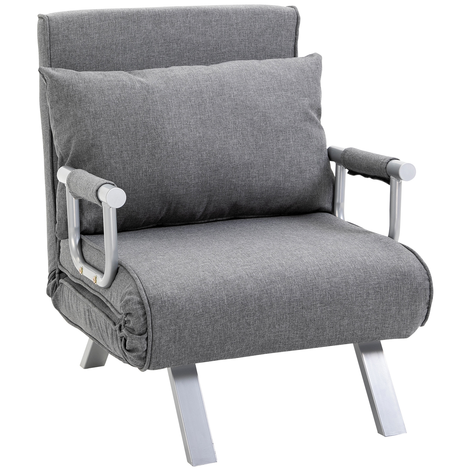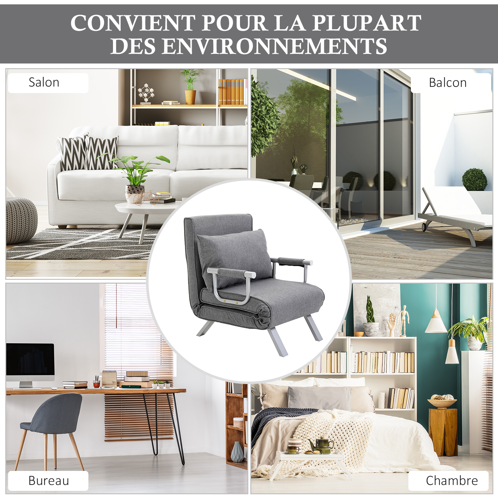 Libellé Fauteuil chauffeuse canapé-lit convertible 1 place déhoussable grand confort coussin pieds accoudoirs métal lin gris clair
