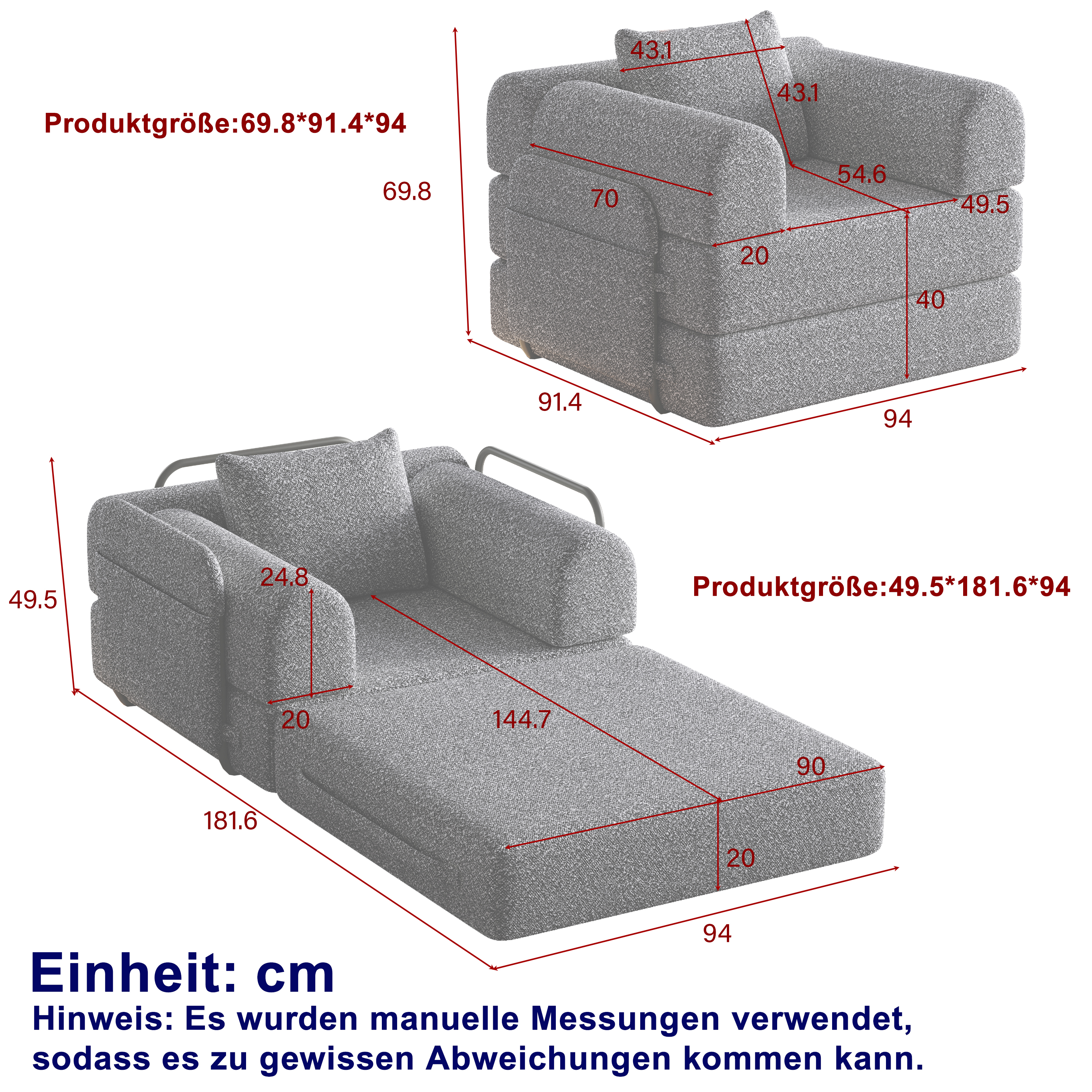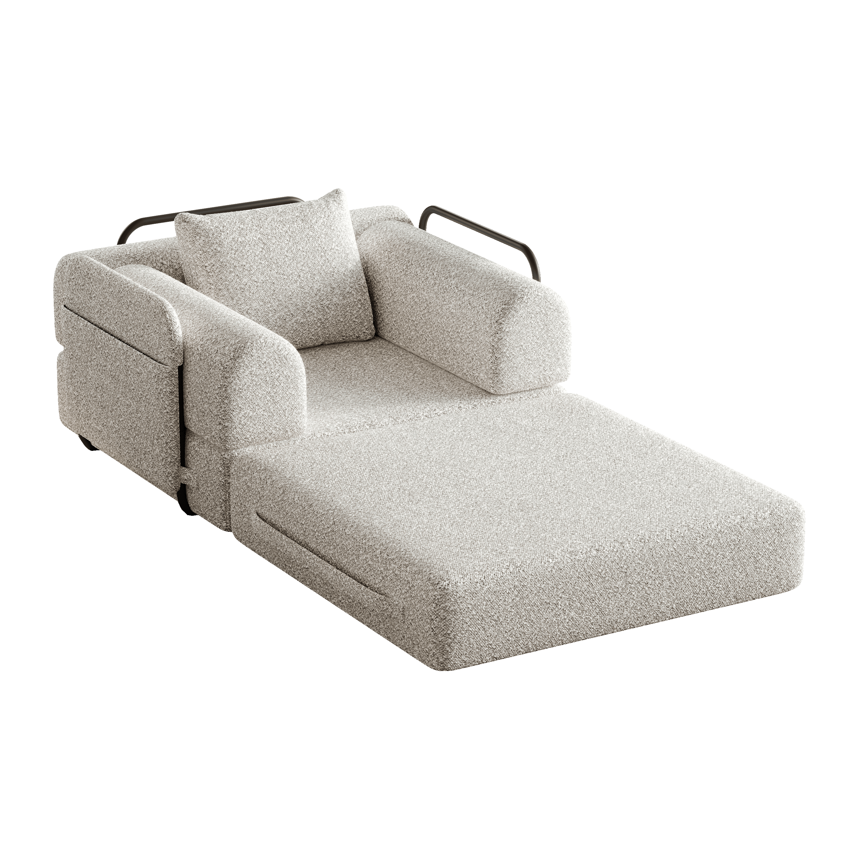 | Libellé | Fauteuil convertible 2-en-1 avec rangement accoudoir, cadres en métal, tissu chenille kaki |