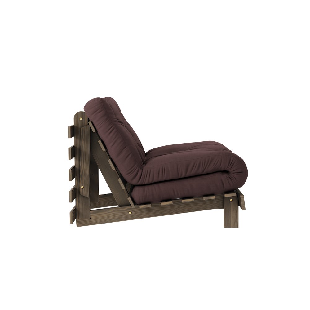 Fauteuil convertible futon ROOTS pin carob brown matelas brown couchage 90 x 200 cm