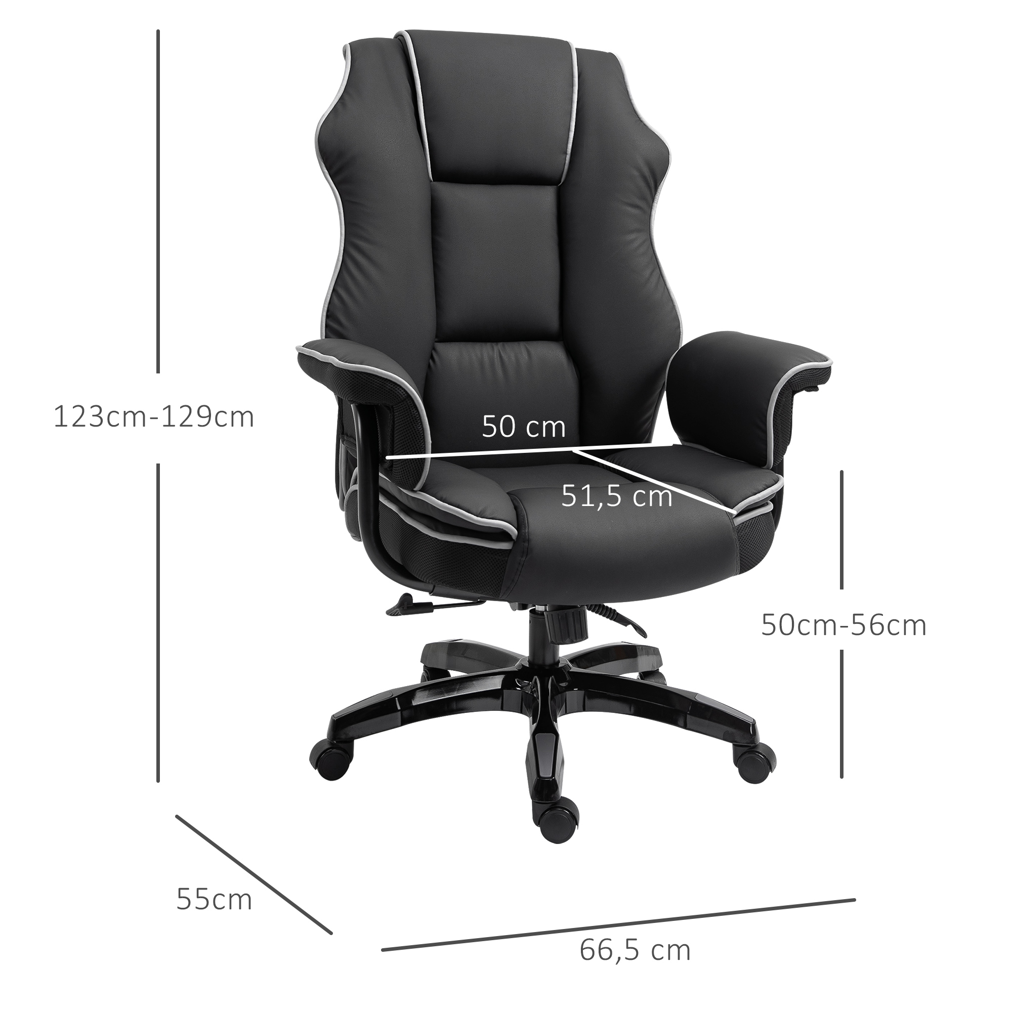 - Dim. totales : 66,5L x 55l x 123-129H cm