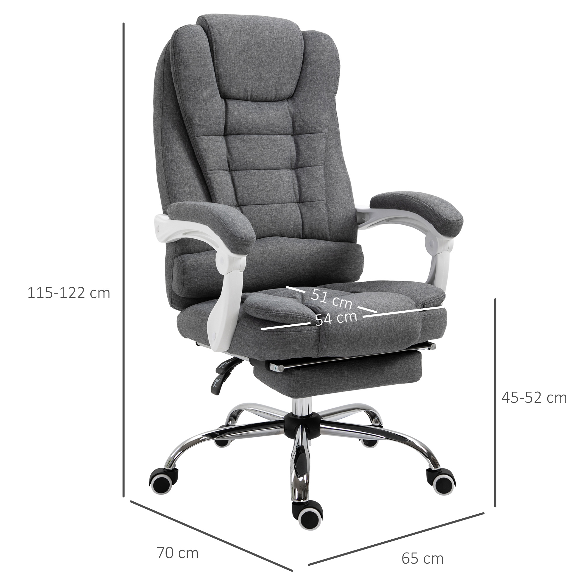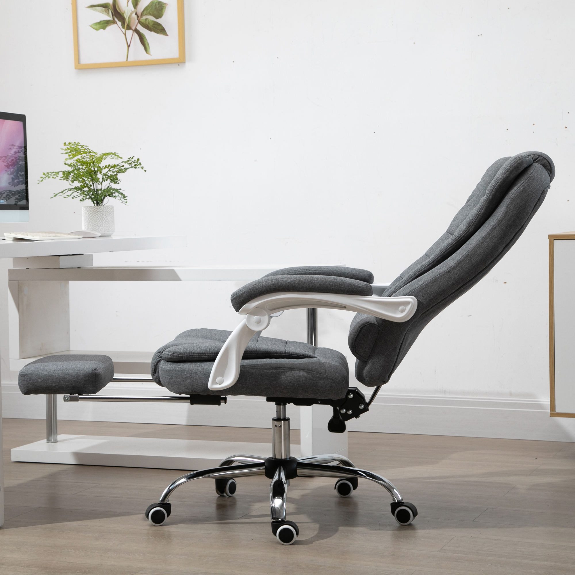 Fauteuil de bureau manager grand confort repose-pied dossier inclinable accoudoirs rembourrés lin gris