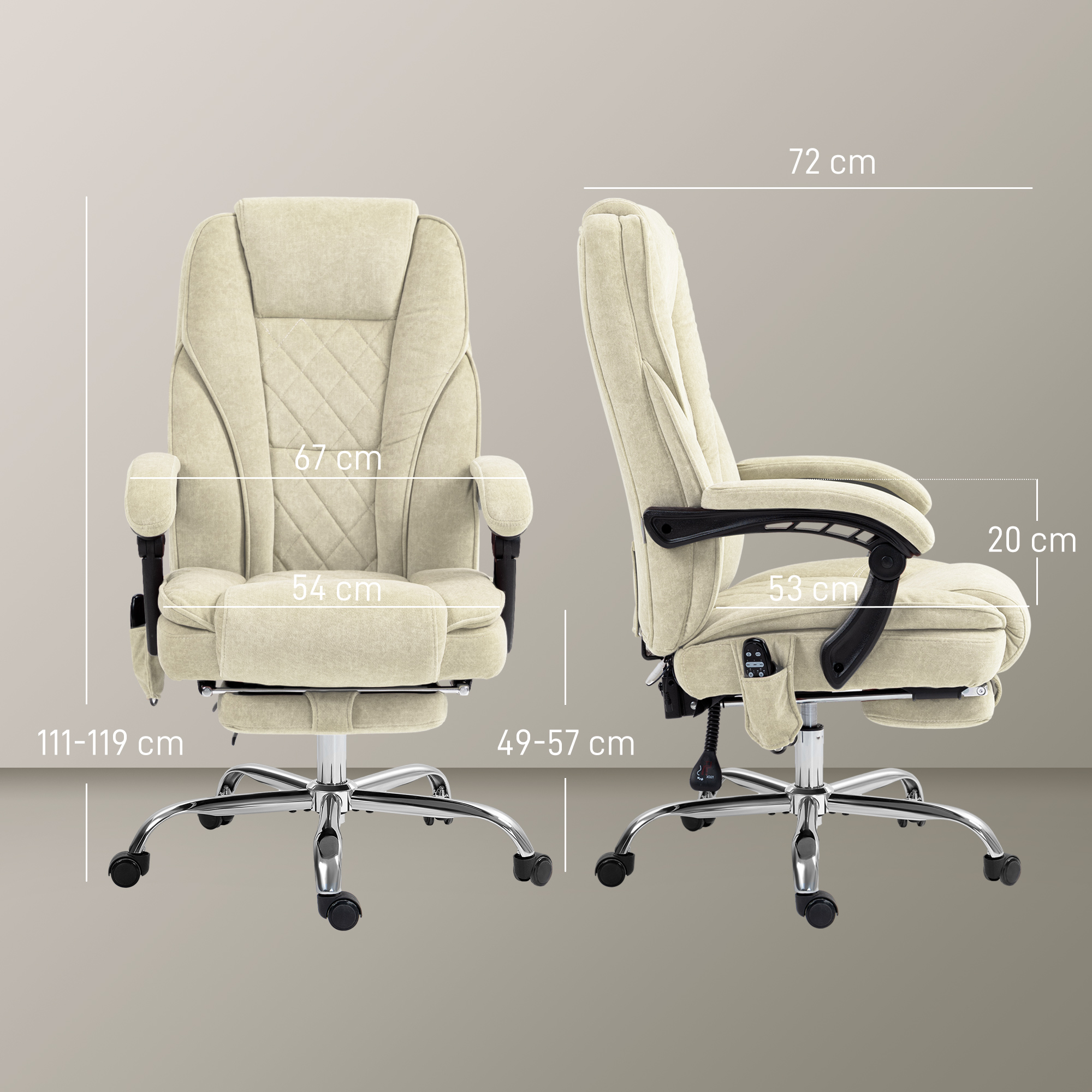 | Libellé | Fauteuil de bureau manager massant chauffant inclinable réglable télécommande repose-pieds rétractable velours beige sable |